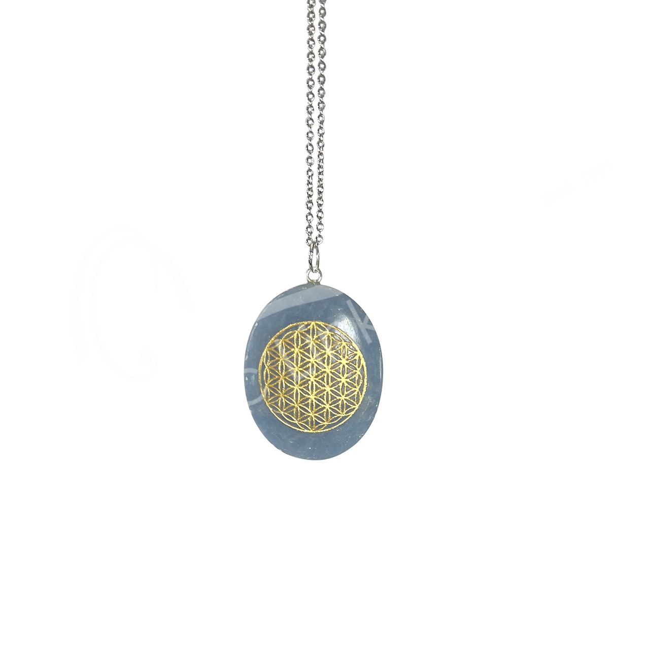 PENDANT – WORRY STONE ANGELITE FLOWER OF LIFE 1.5-1.75″
