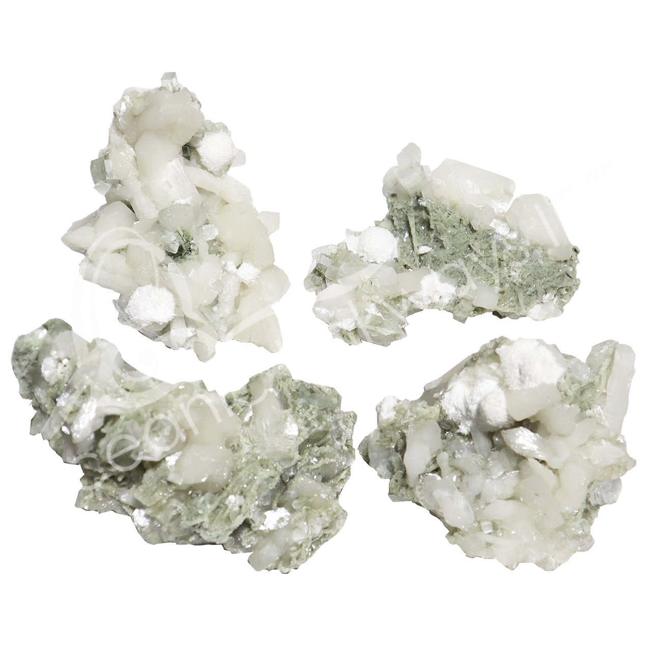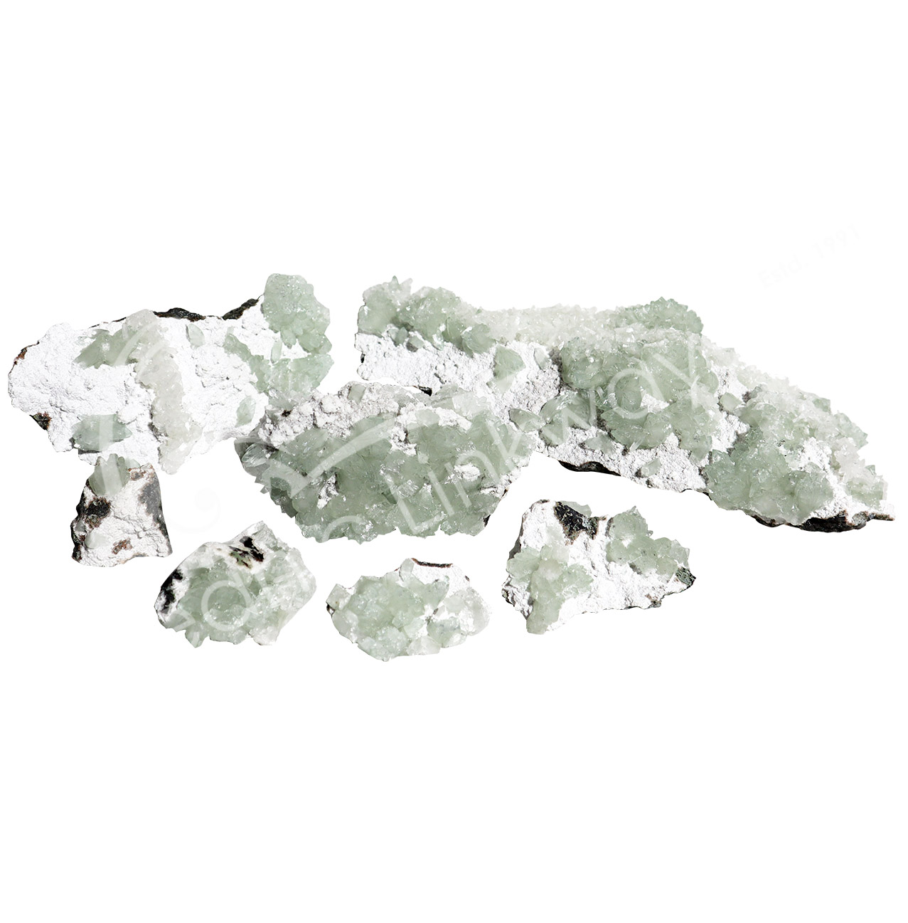 (CLOSE OUT) SPECIMEN – APOPHYLLITE, LIGHT GREEN ON OKENITE MATRIX 2-10″