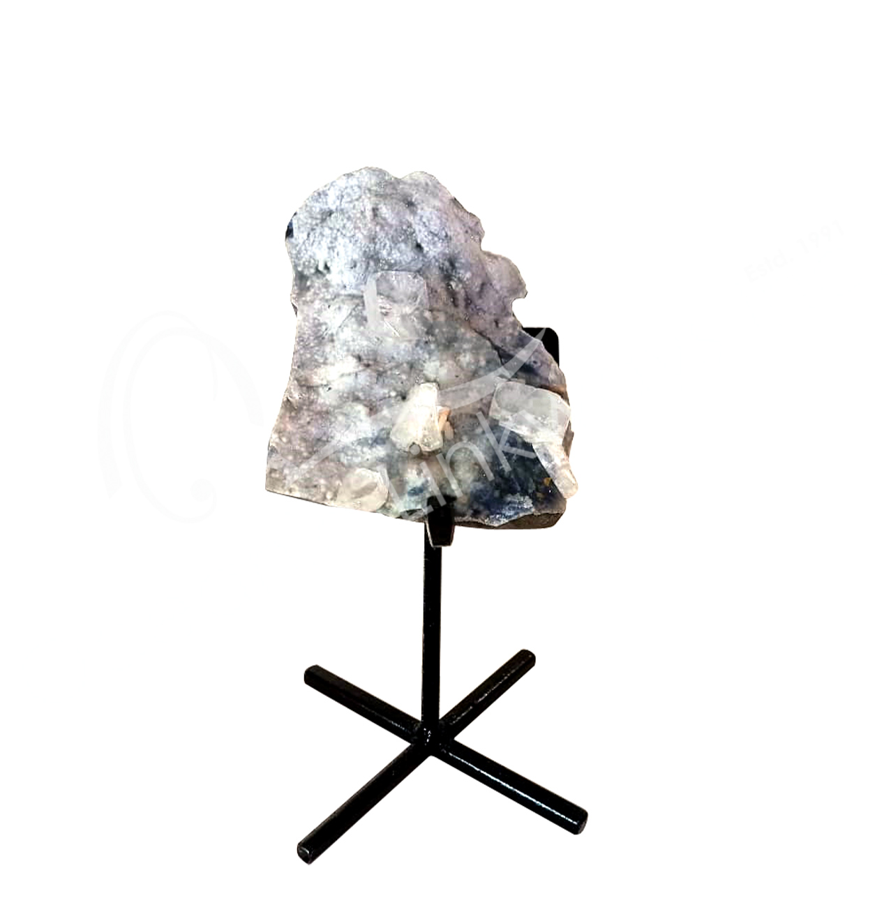 (CLOSE OUT) SPECIMEN – APOPHYLLITE & STILBITE, MIXED COLORS ON METAL STAND 16 X 19″