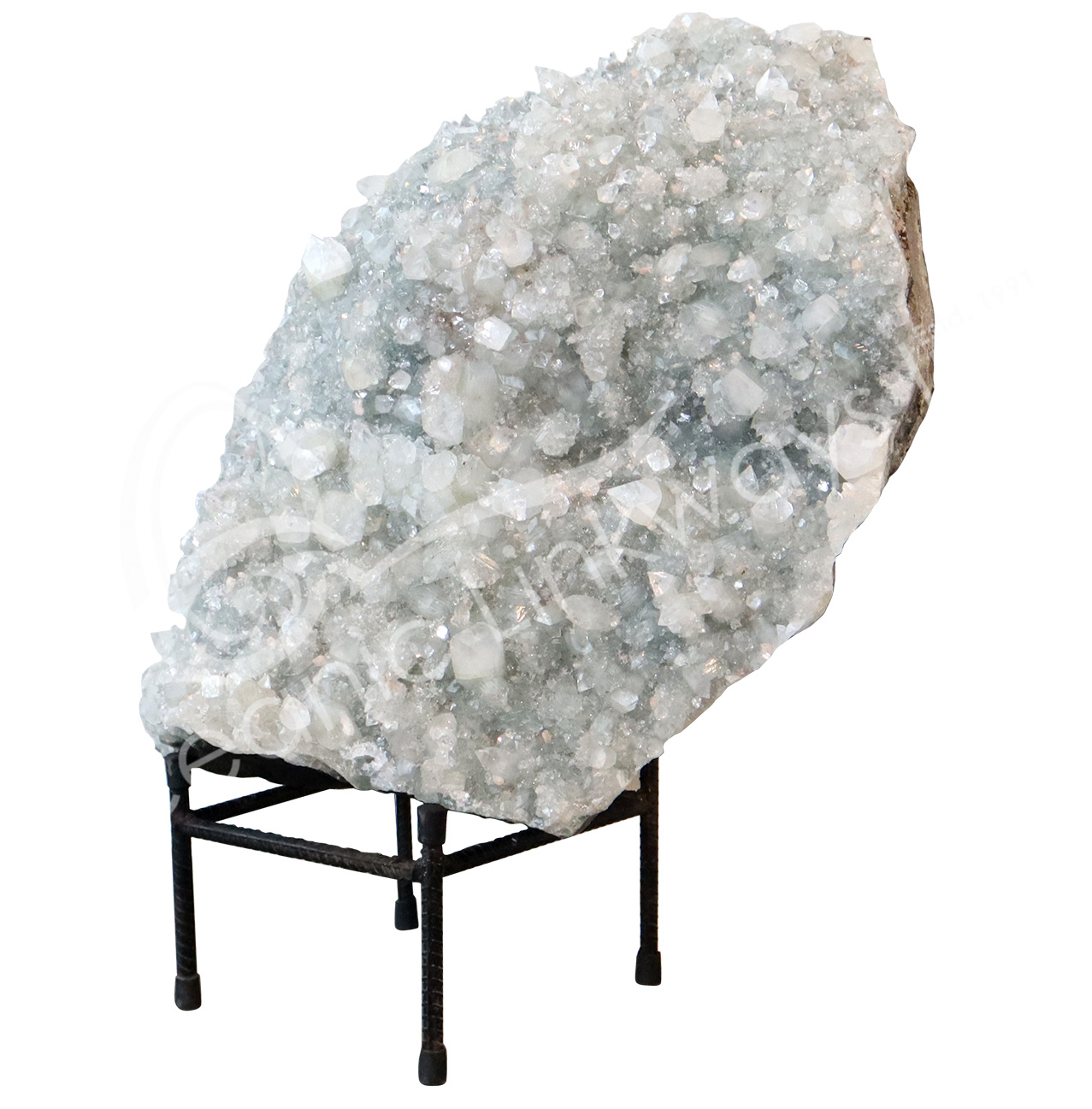 (CLOSE OUT) SPECIMEN – APOPHYLLITE & STILBITE, MIXED COLORS ON METAL STAND 18 X 18″