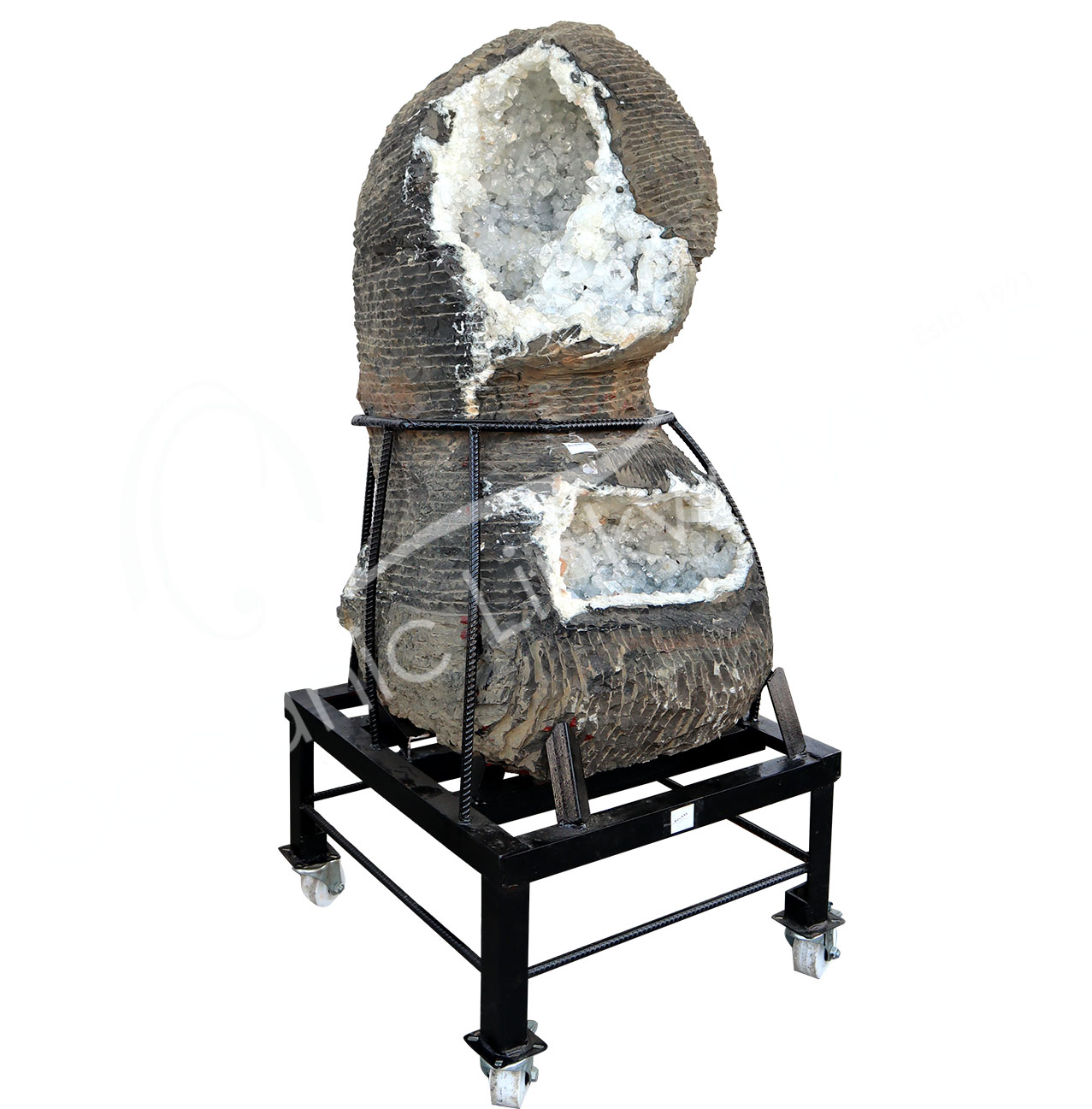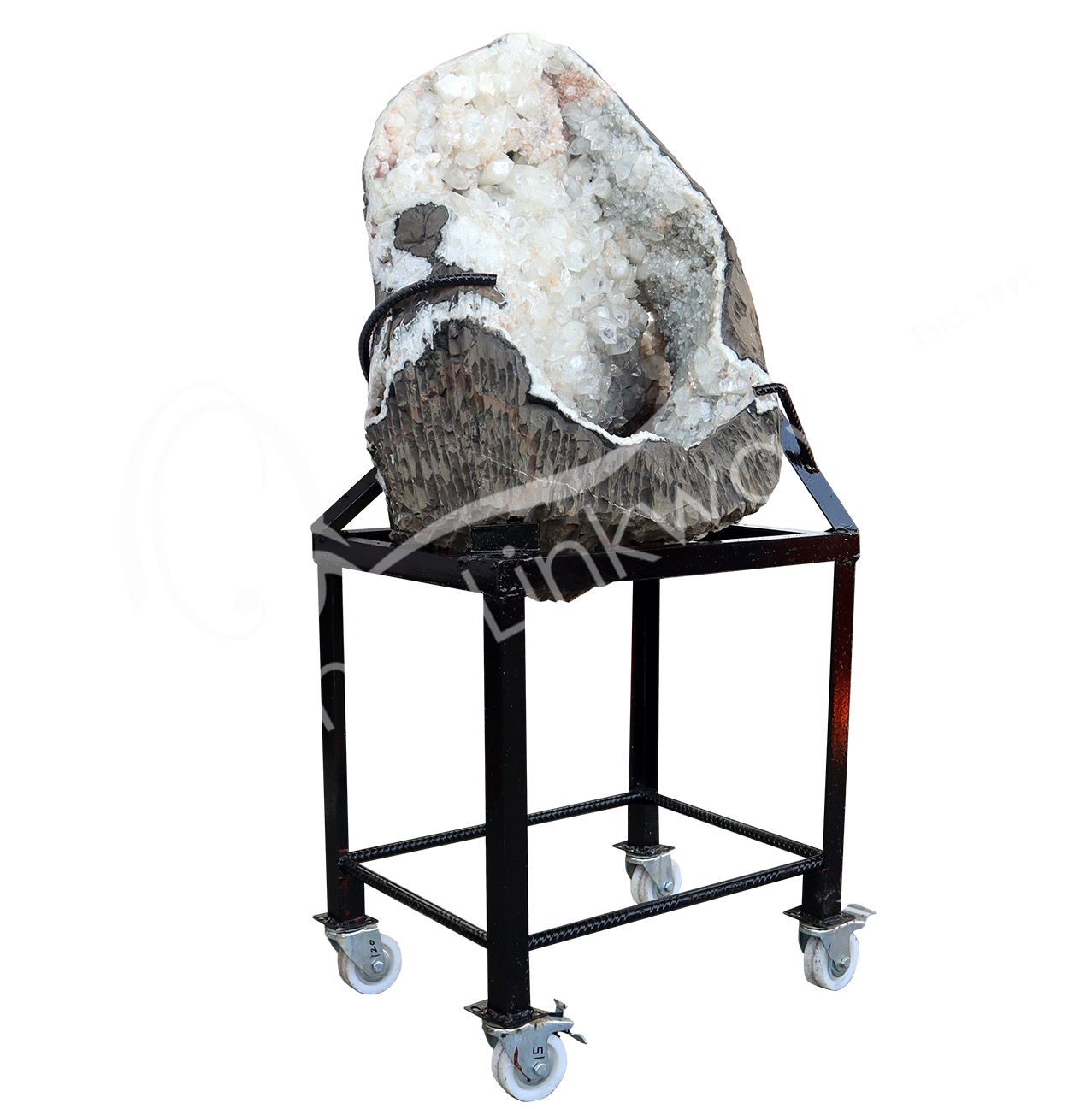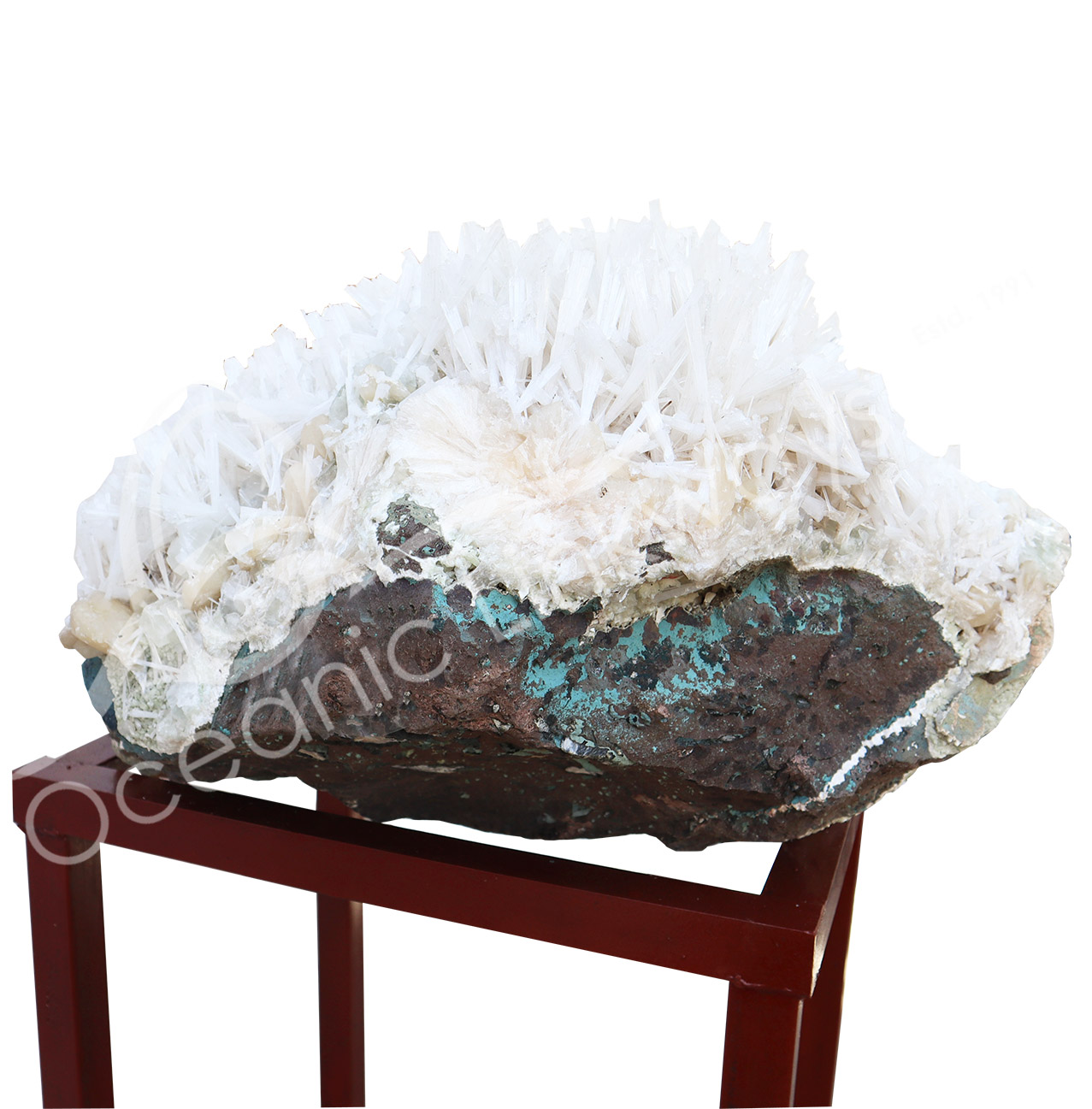 (CLOSE OUT) SPECIMEN – APOPHYLLITE & STILBITE ON MATRIX WITH METAL STAND 16 X 8″