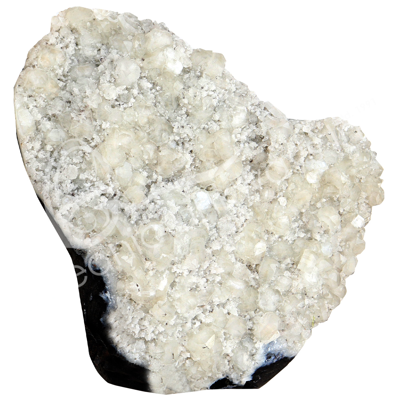 SPECIMEN – APOPHYLLITE & STILBITE ON BLACK CHALCEDONY 2-15″