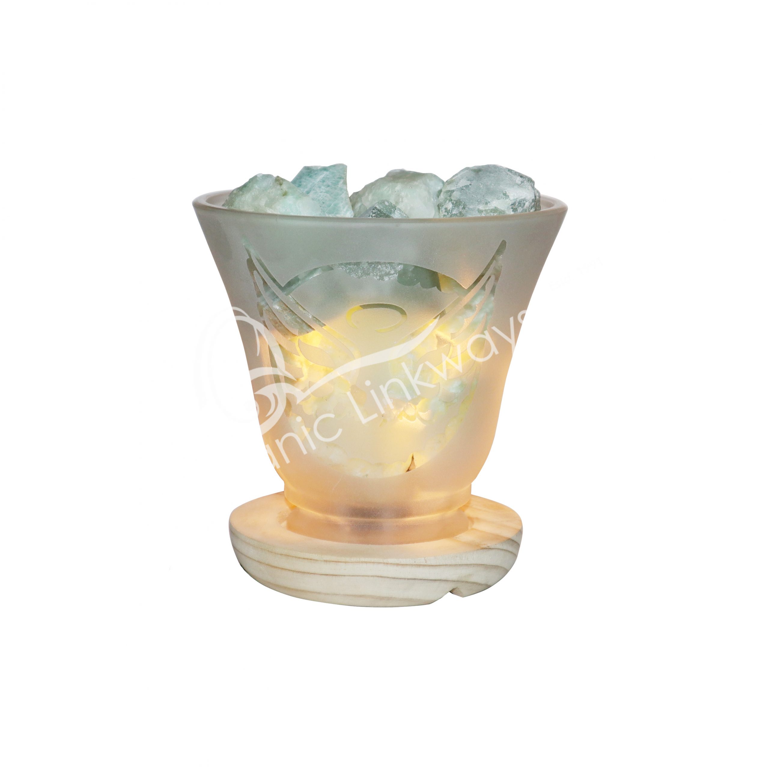 LAMP – AQUAMARINE CHUNKS IN FROSTED GLASS WITH ANGEL WINGS NO CORD 4.75-5″H