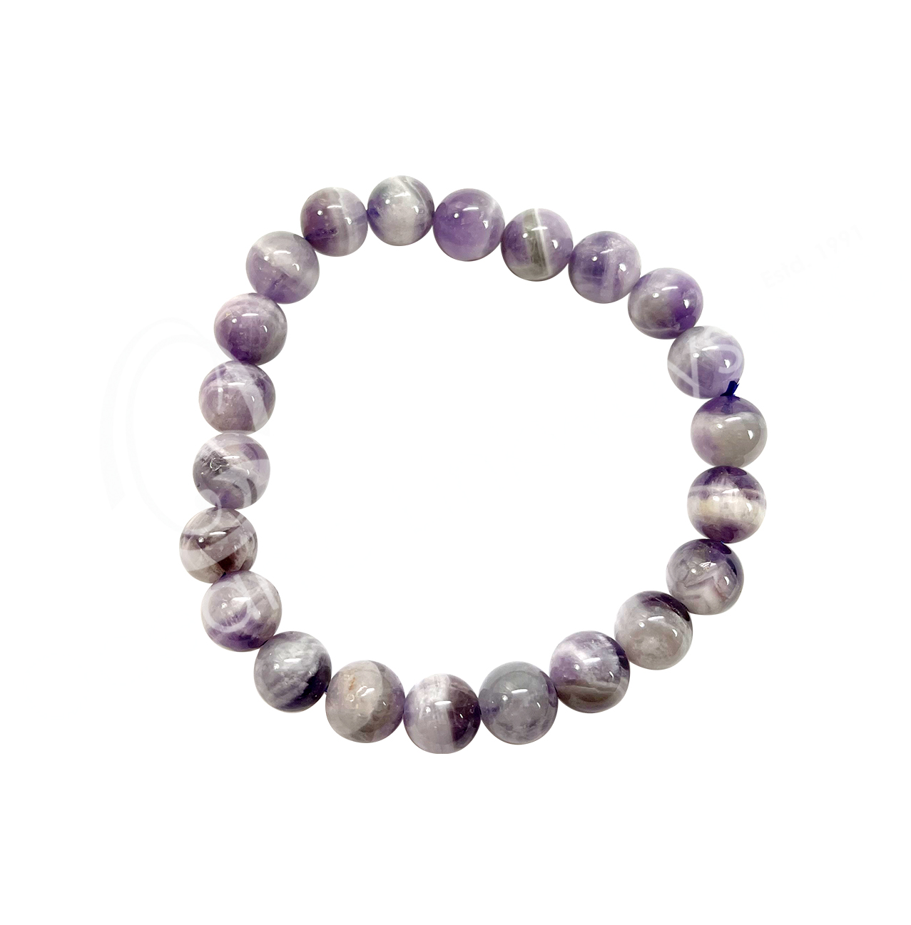 BRACELET – AMETHYST, CHEVRON & CRYSTAL QUARTZ LOTUS (8-8.5 MM) 7.15-7.25″