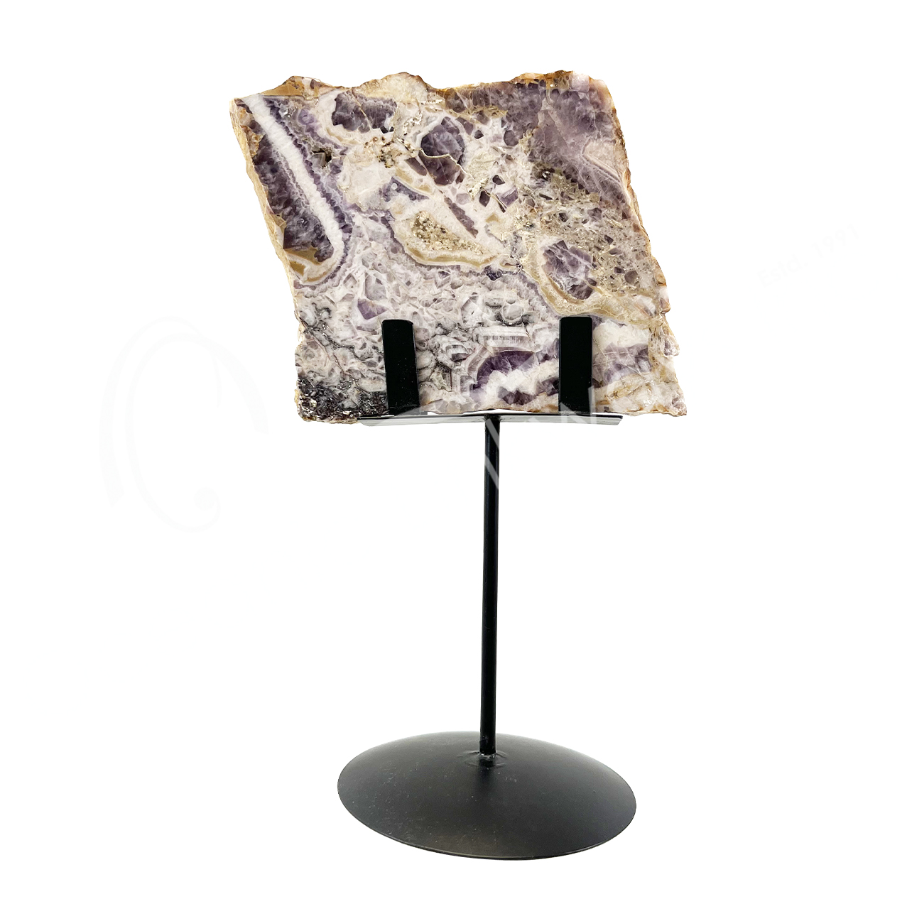 SLICE – AMETHYST, CHEVRON POLISHED ON METAL STAND 5-8.5″
