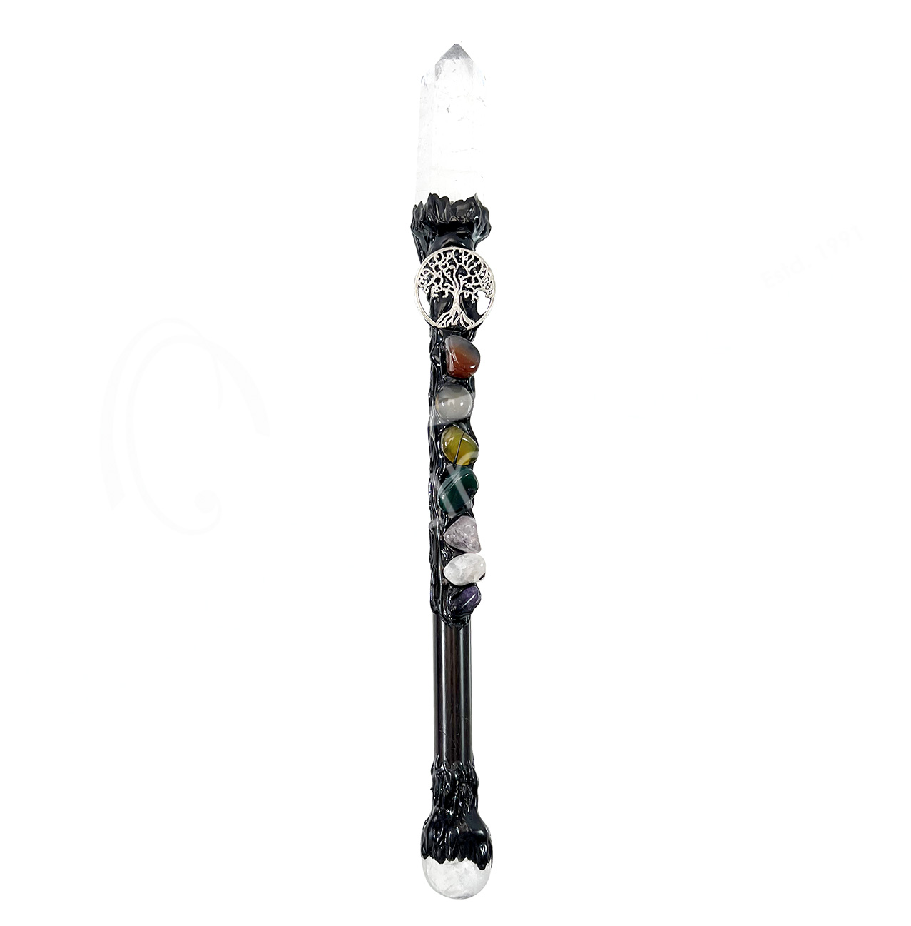 HEALING MAGIC WAND – CRYSTAL QUARTZ POINT CHAKRA TREE OF LIFE 10-10.5″L