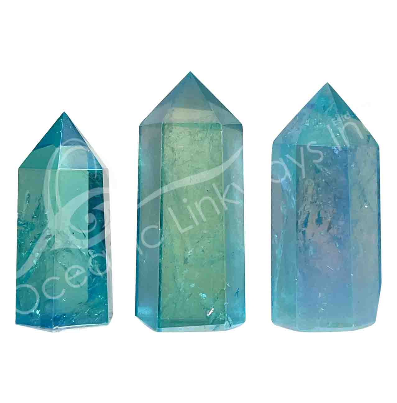 (CLOSE OUT) OBELISK – CRYSTAL QUARTZ PLATED AQUA AURA 1.5-2.5″