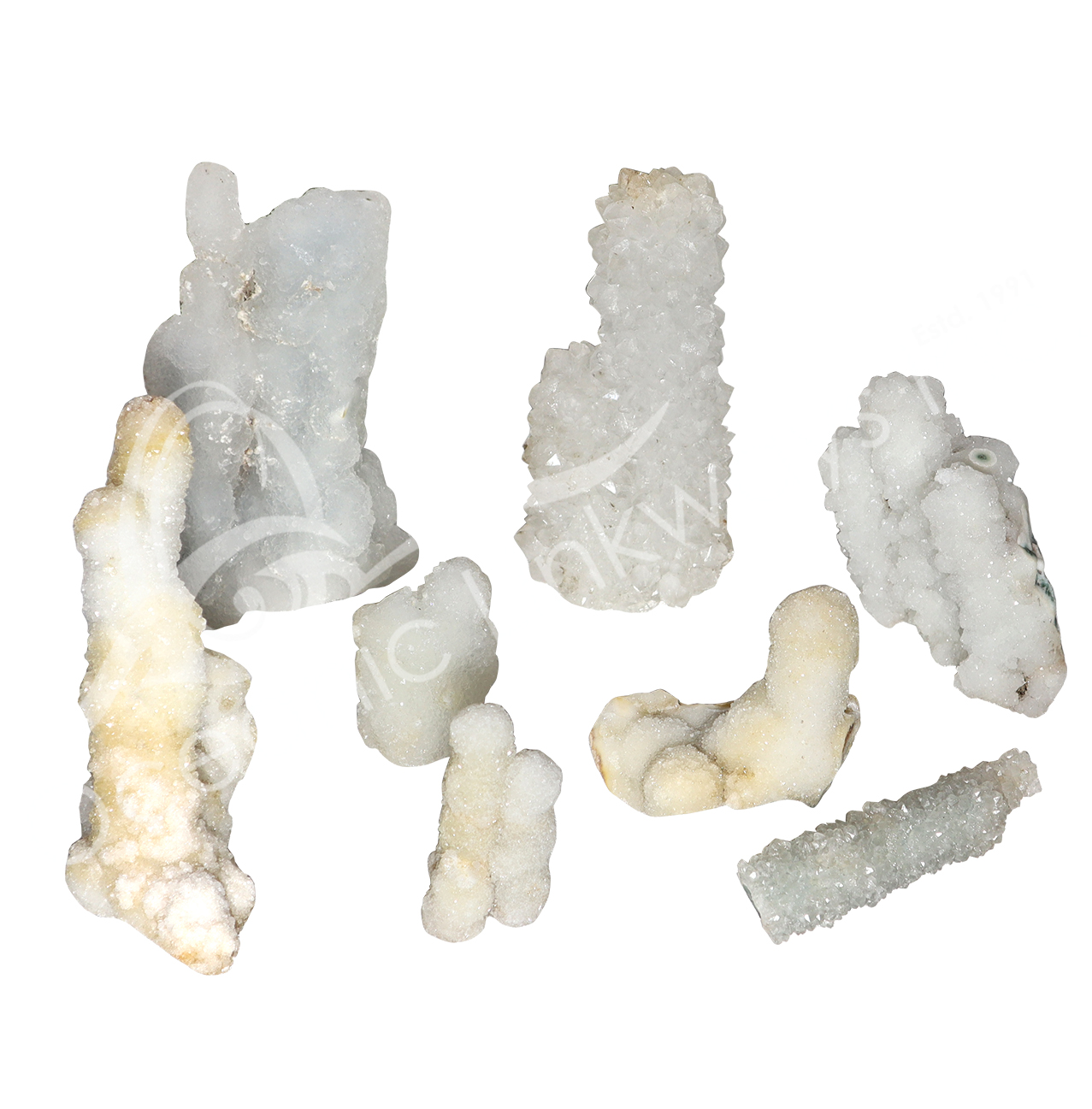 SPECIMEN – CHALCEDONY & CRYSTAL QUARTZ STALACTITE 2 X 2″ TO 9 X 12″