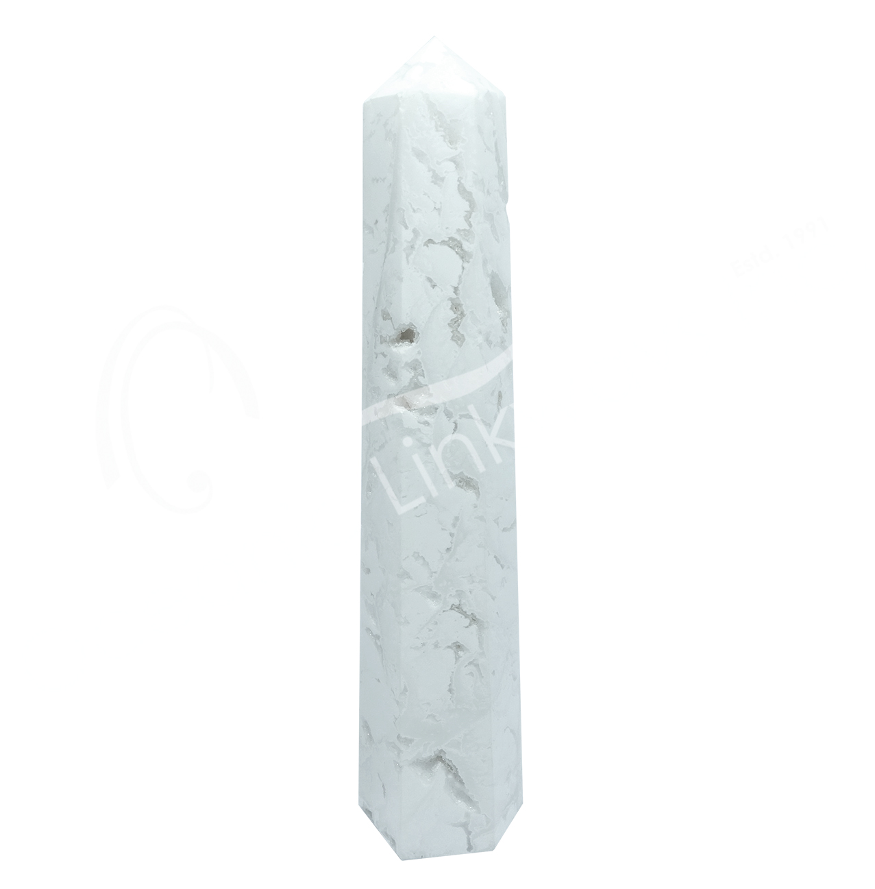 OBELISK – AGATE, WHITE WITH DRUSE 2-5″
