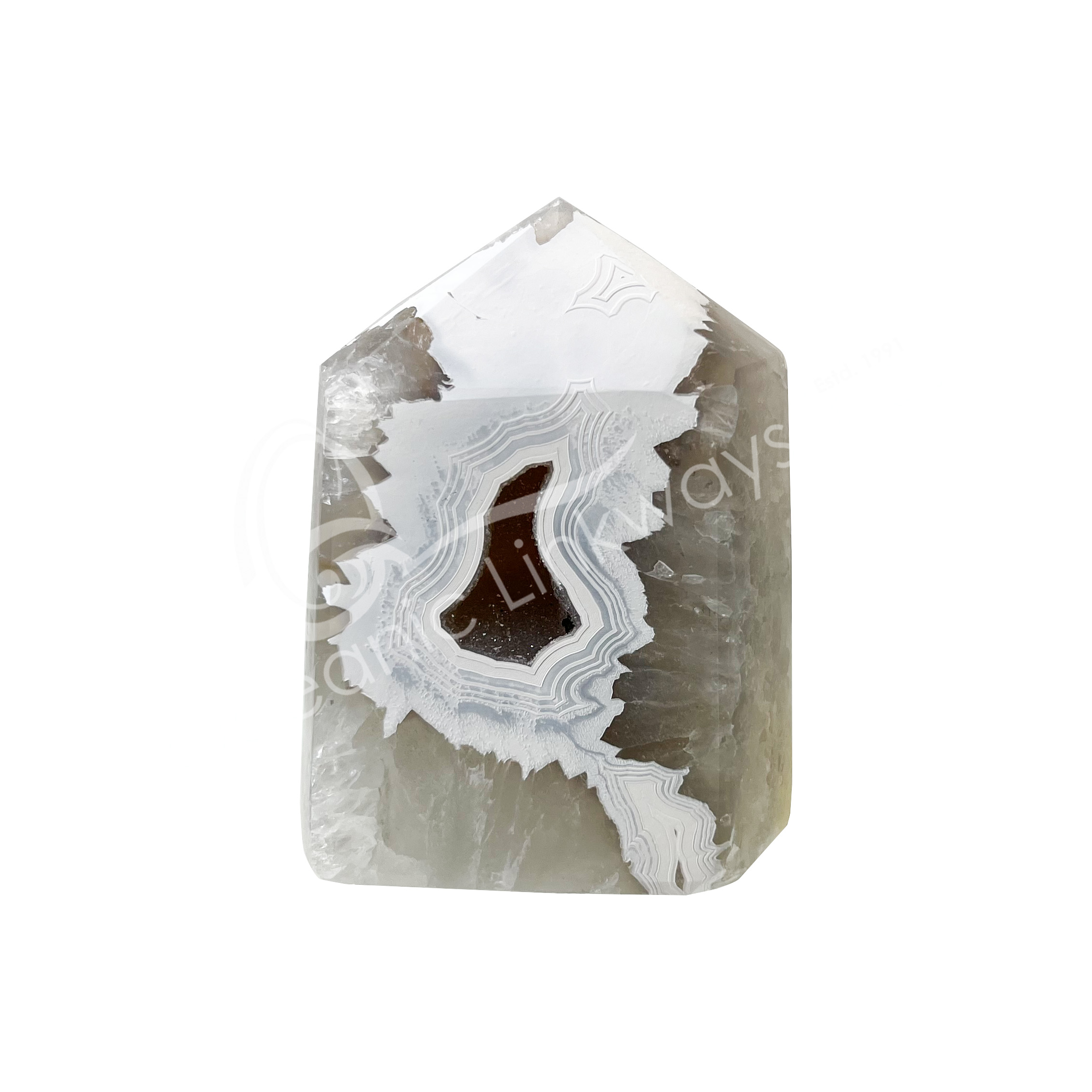 (CLOSE OUT) POINT – AGATE, WHITE A TOP POLISHED W/DRUSE 2.5-5″
