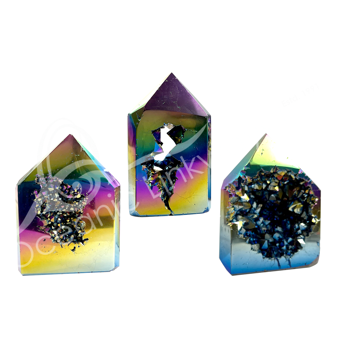 OBELISK – AMETHYST, PLATED RAINBOW & AB WITH DRUSE 3-5″