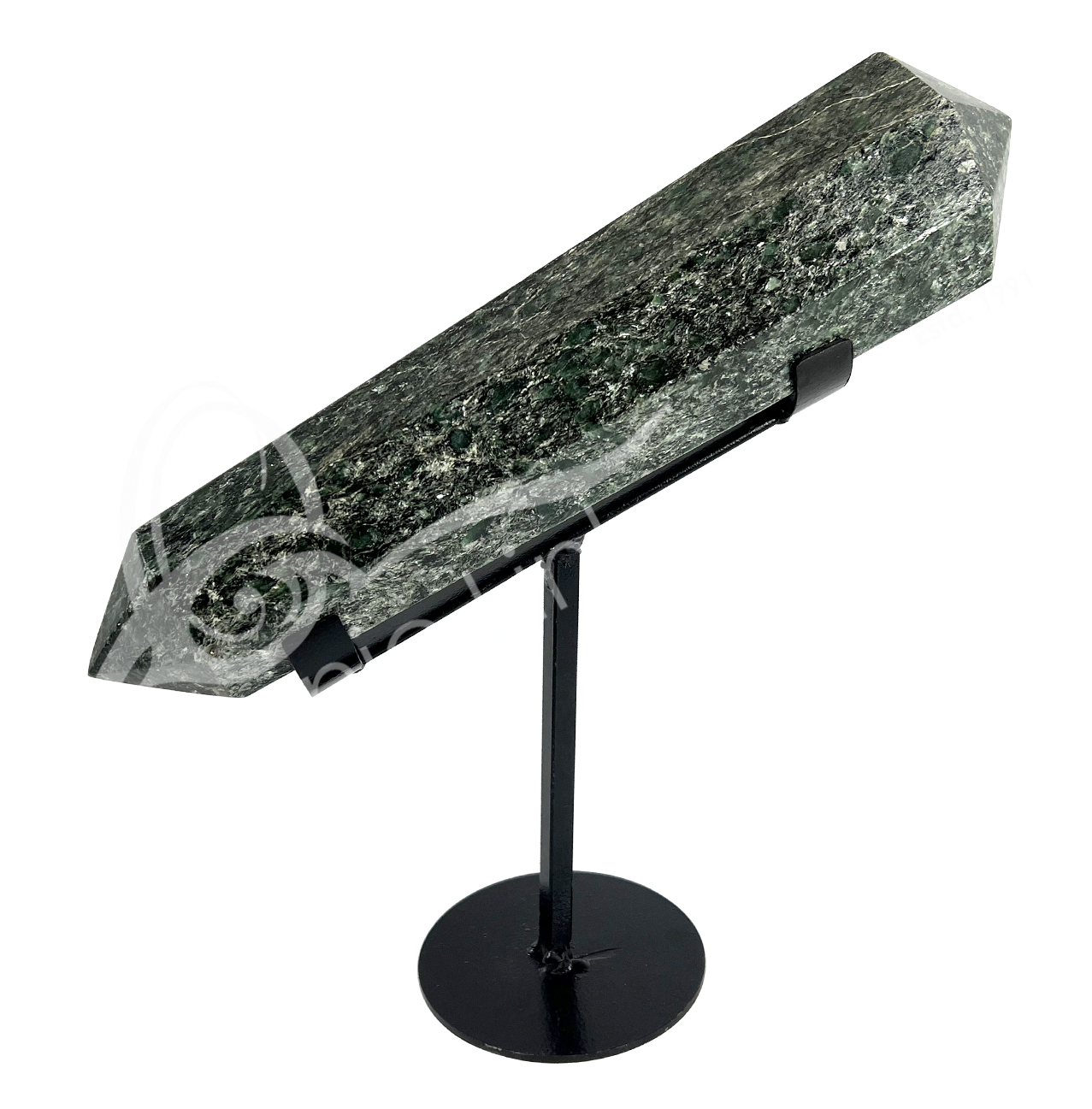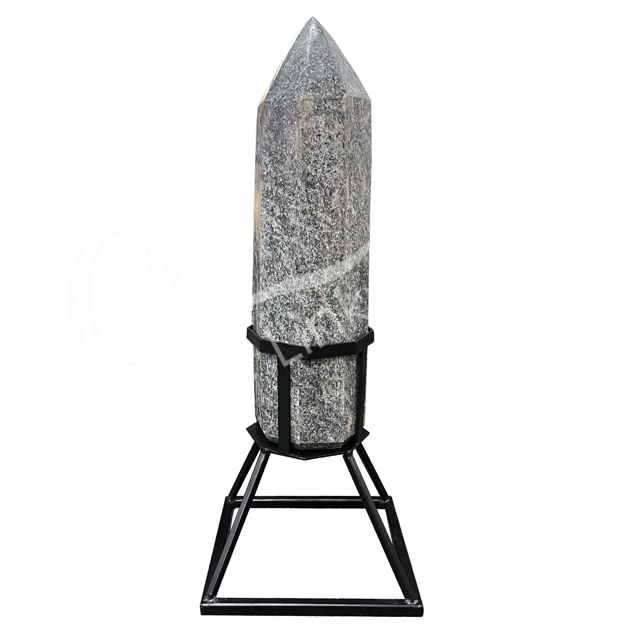 OBELISK – EMERALD IN MATRIX WITH IRON METAL STAND 31 X 8″DIA