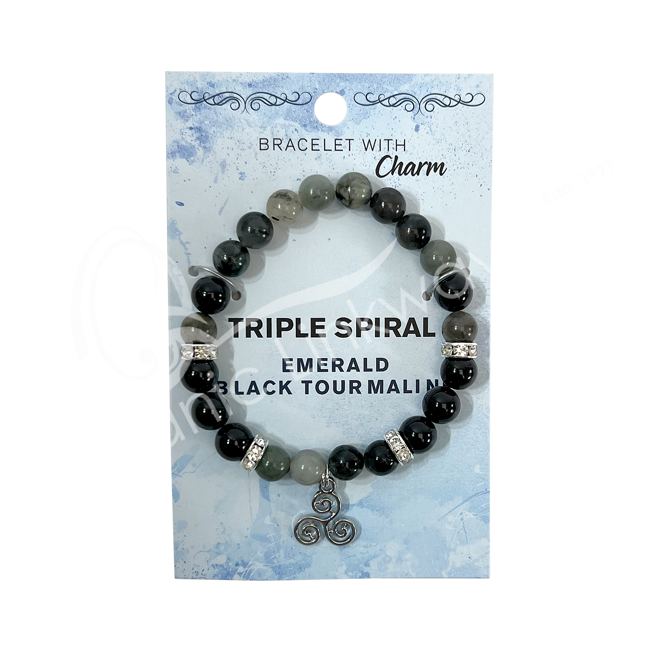 BRACELET – EMERALD & BLACK TOURMALINE TRIPLE SPIRAL (8-8.5 MM) 7.15-7.25″