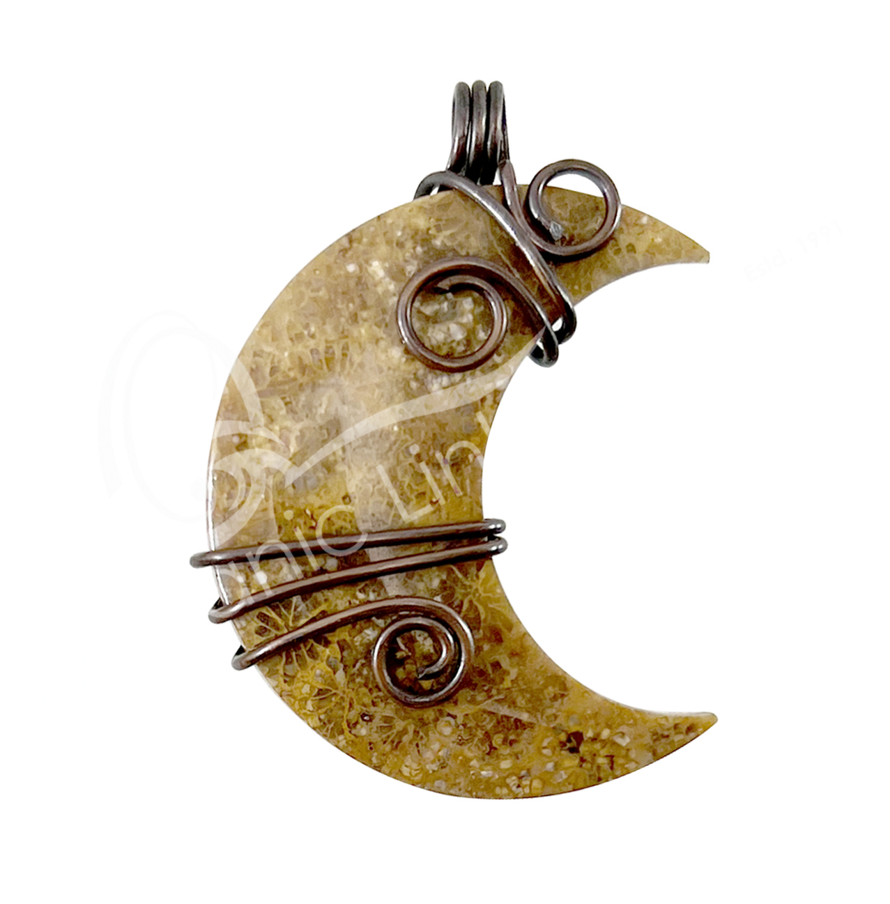 PENDANT – MOON WIRE WRAP FOSSIL CORAL 1.25-1.5″