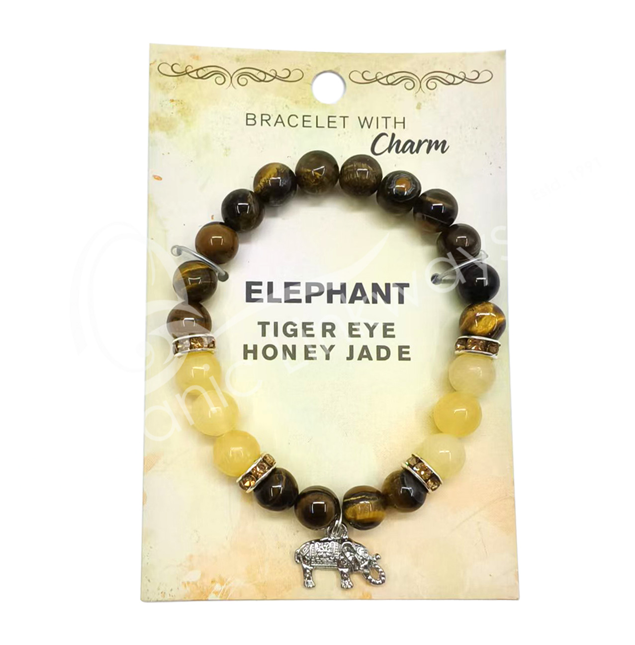 BRACELET – TIGER EYE & HONEY JADE ELEPHANT (8-8.5 MM) 7.15-7.25″