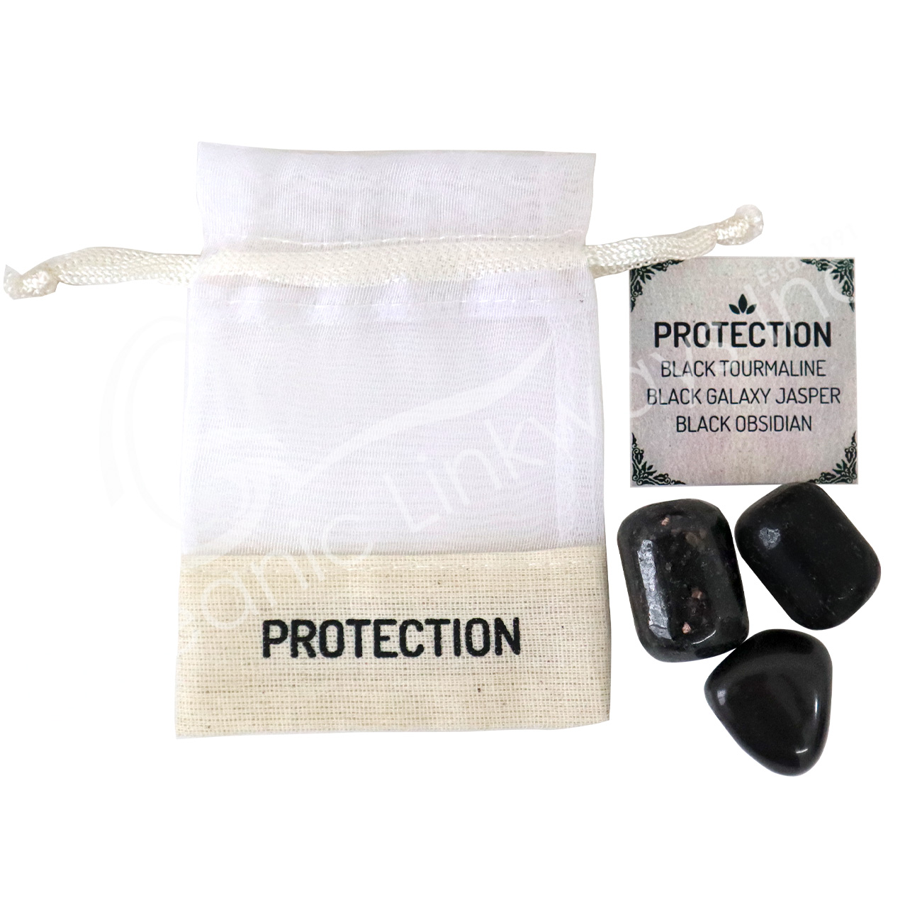 TUMBLED STONES KIT – PROTECTION/BLACK TOURMALINE, BLACK GALAXY JASPER, BLACK OBSIDIAN 15-35 MM
