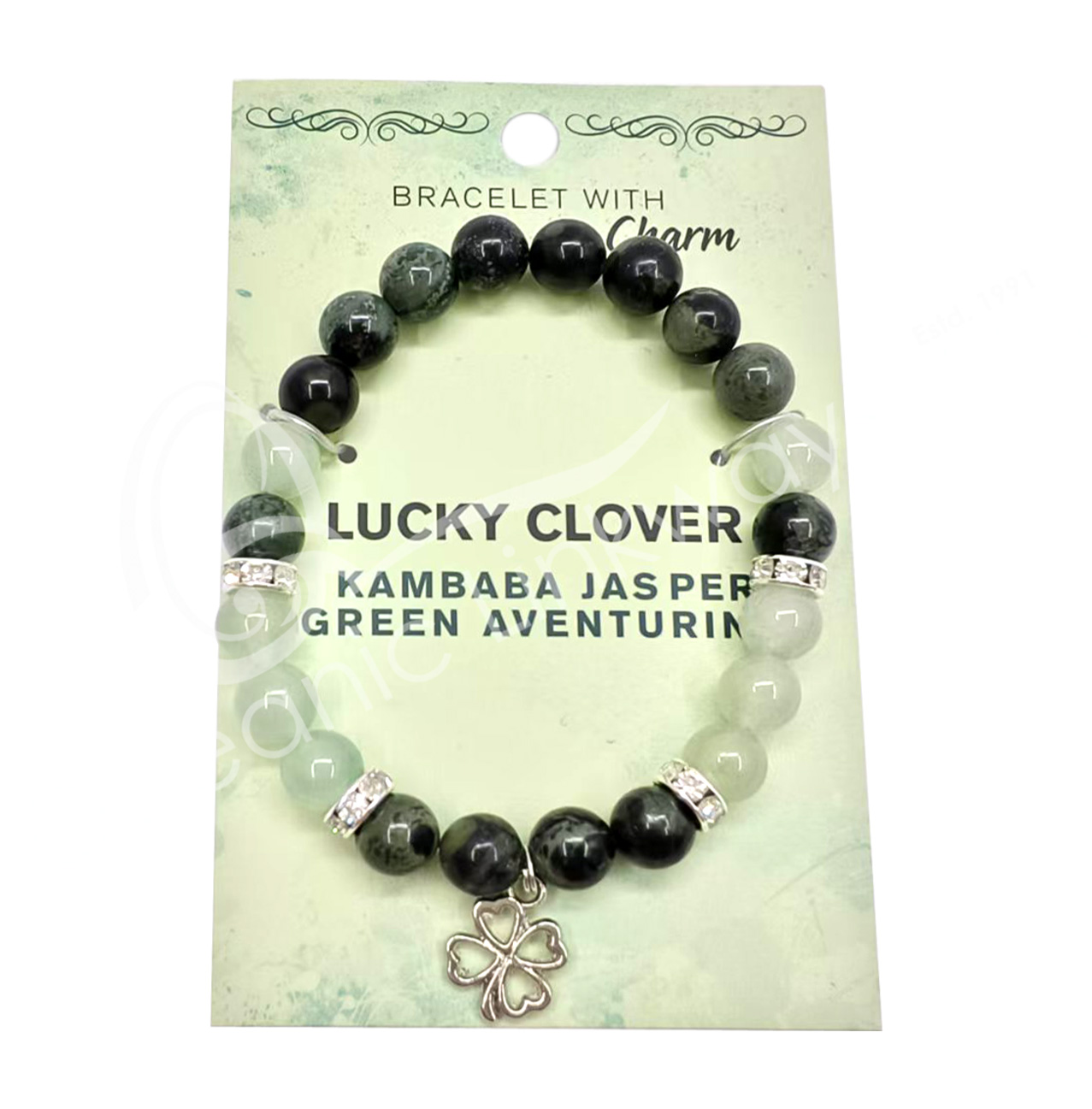 BRACELET – JASPER, KAMBABA & GREEN AVENTURINE LUCKY CLOVER (8-8.5 MM) 7.15-7.25″