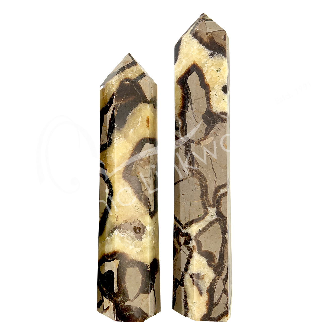 OBELISK – JASPER, SEPTARIAN YELLOW & BROWN 5-8″