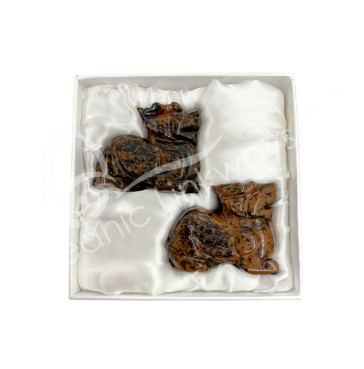 (CLOSE OUT) CARVING – OBSIDIAN, MAHOGANY FU DOG (SET OF 2)
