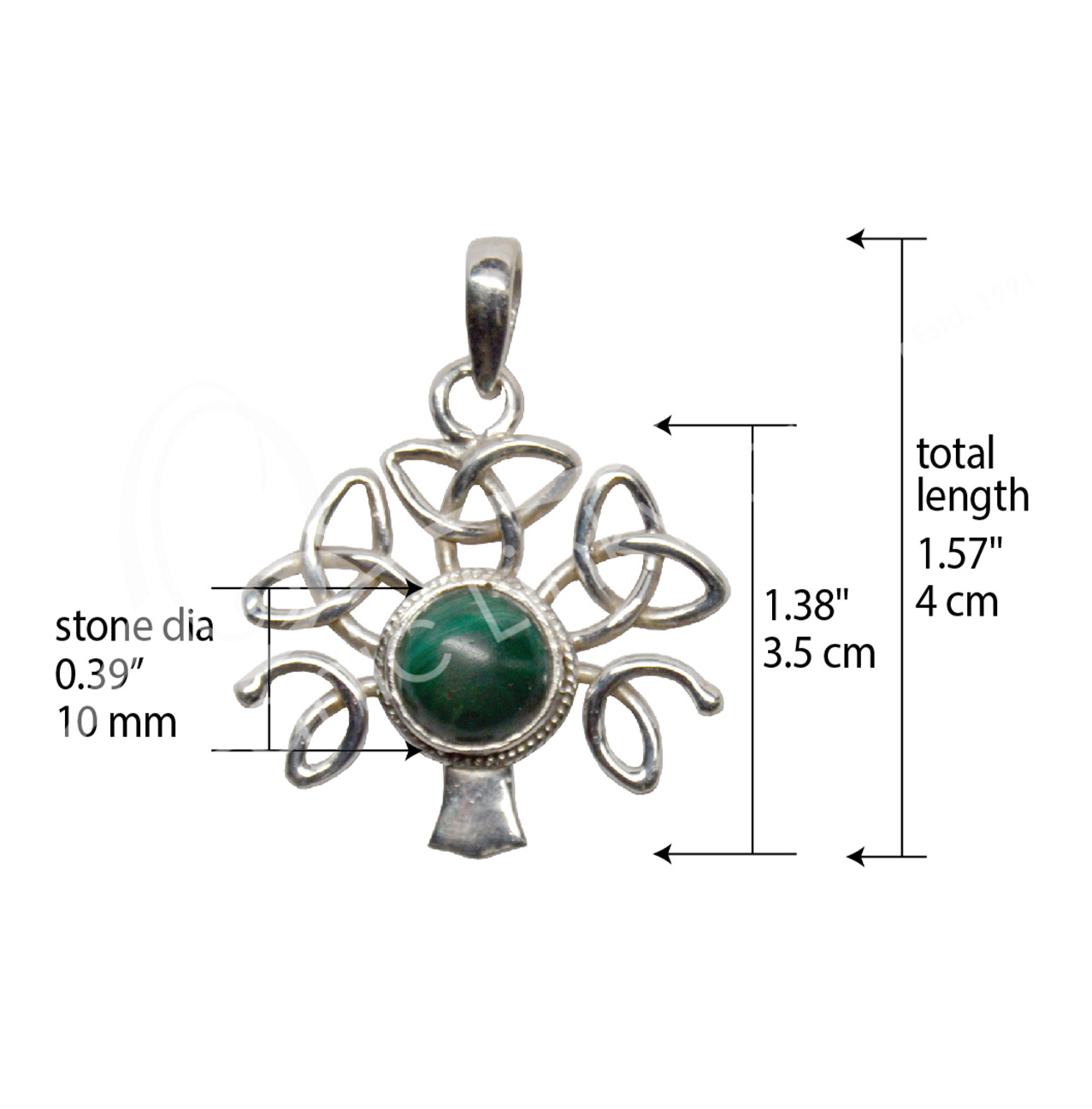 STERLING SILVER – PENDANT TRIQUETRA TREE OF LIFE MALACHITE 1″W X 1.5″H