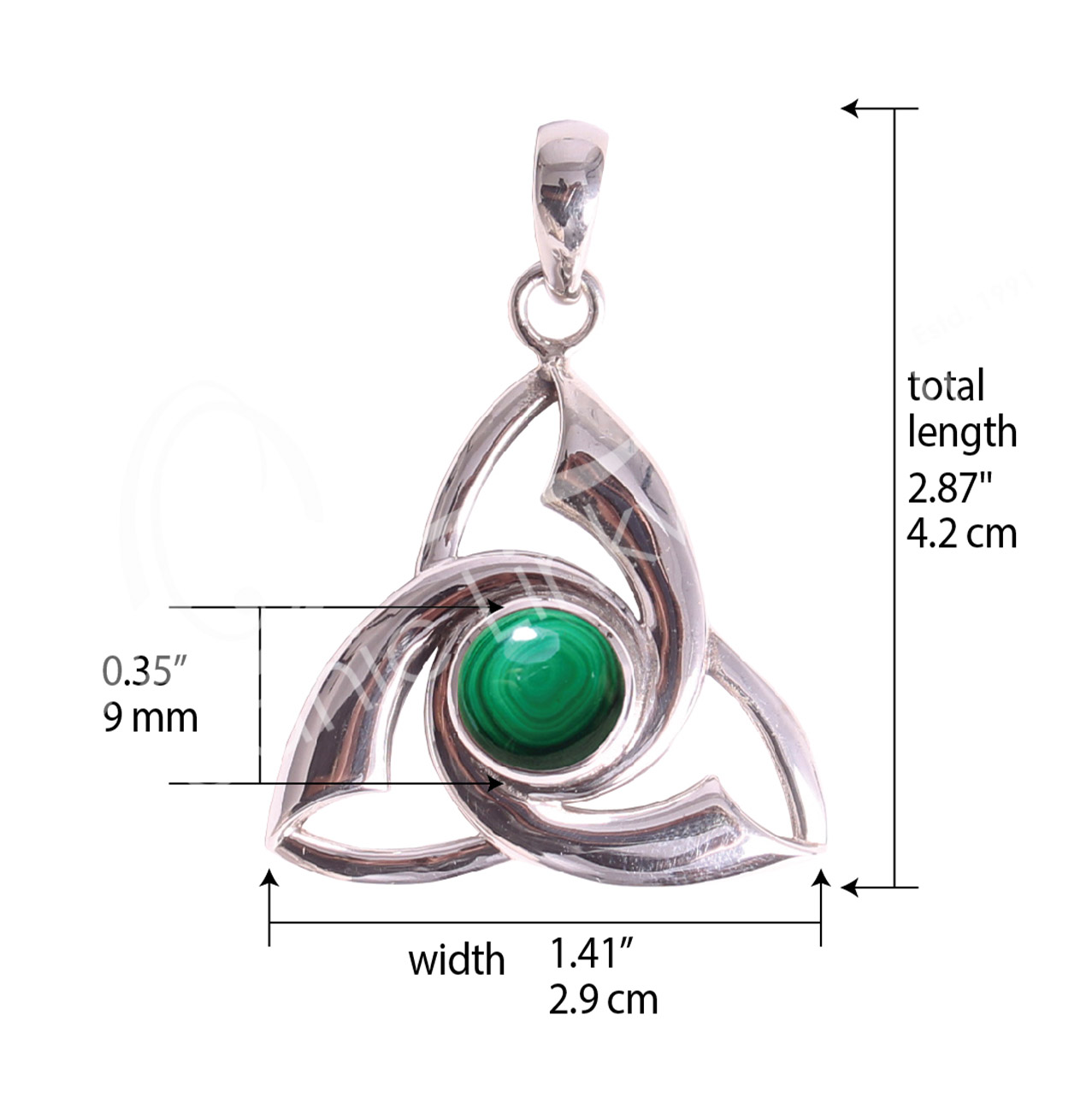 STERLING SILVER – PENDANT TRIQUETRA MALACHITE 1″W