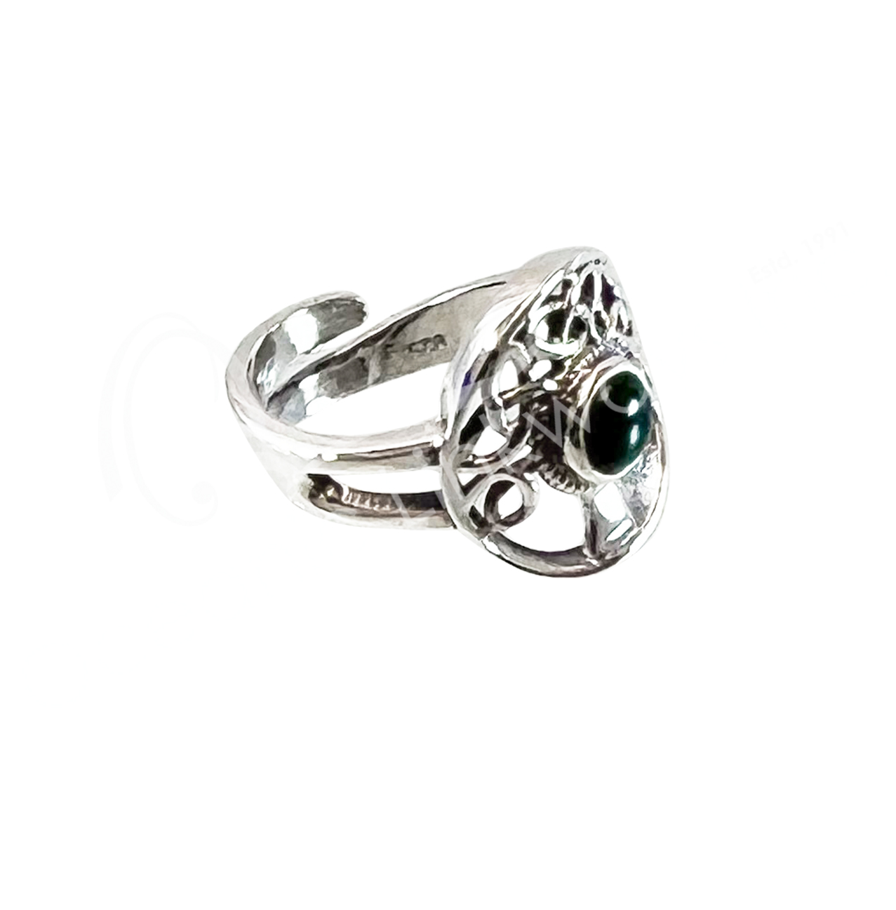 STERLING SILVER – RING, ADJUSTABLE TREE OF LIFE MALACHITE