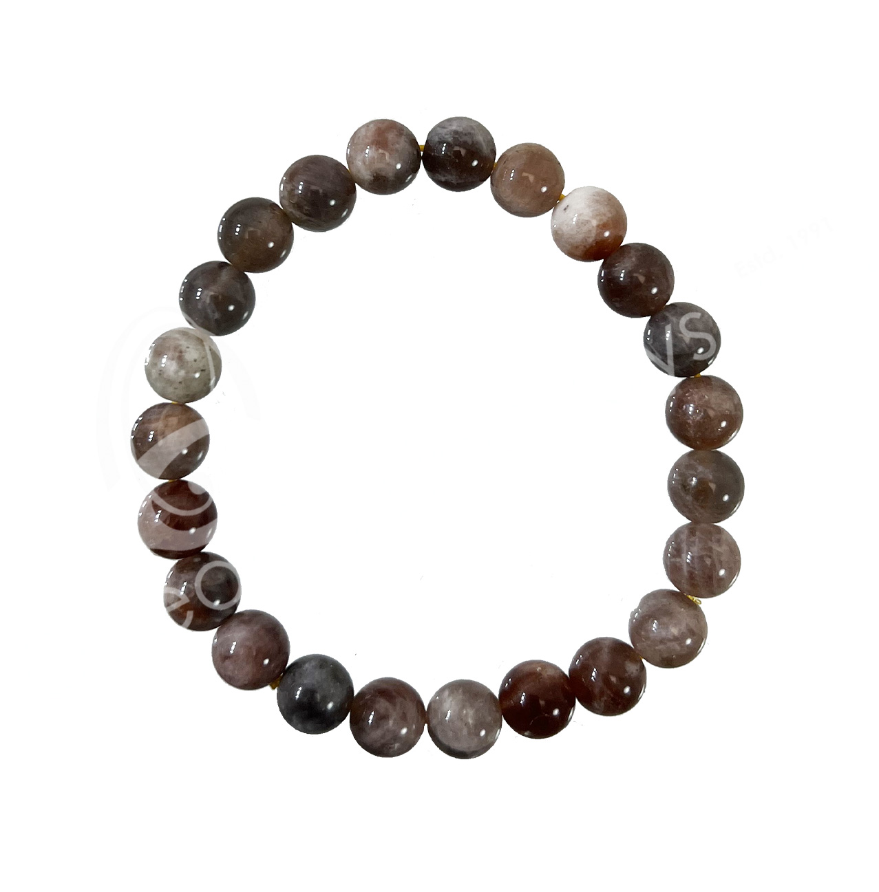 BRACELET – MOONSTONE, BLACK & PEACH (8 MM) 8-8.5″