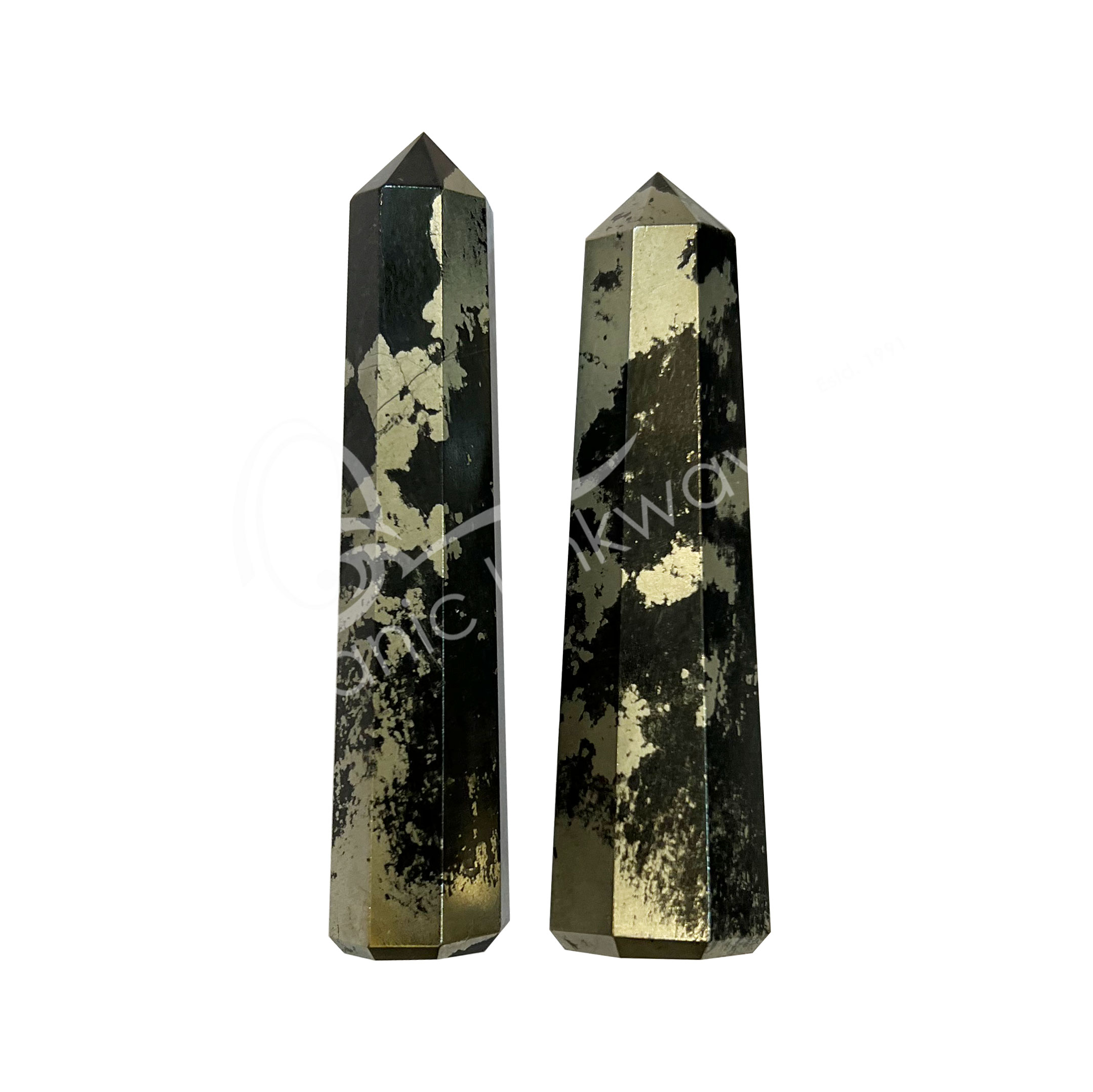 OBELISK – PYRITE WITH BLACK MAGNETITE 3-4″