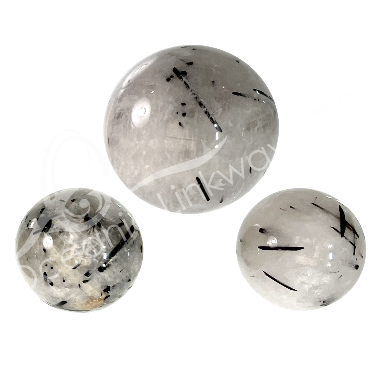 SPHERE – QUARTZ WITH BLACK TOURMALINE RUTILE 1.75-3″