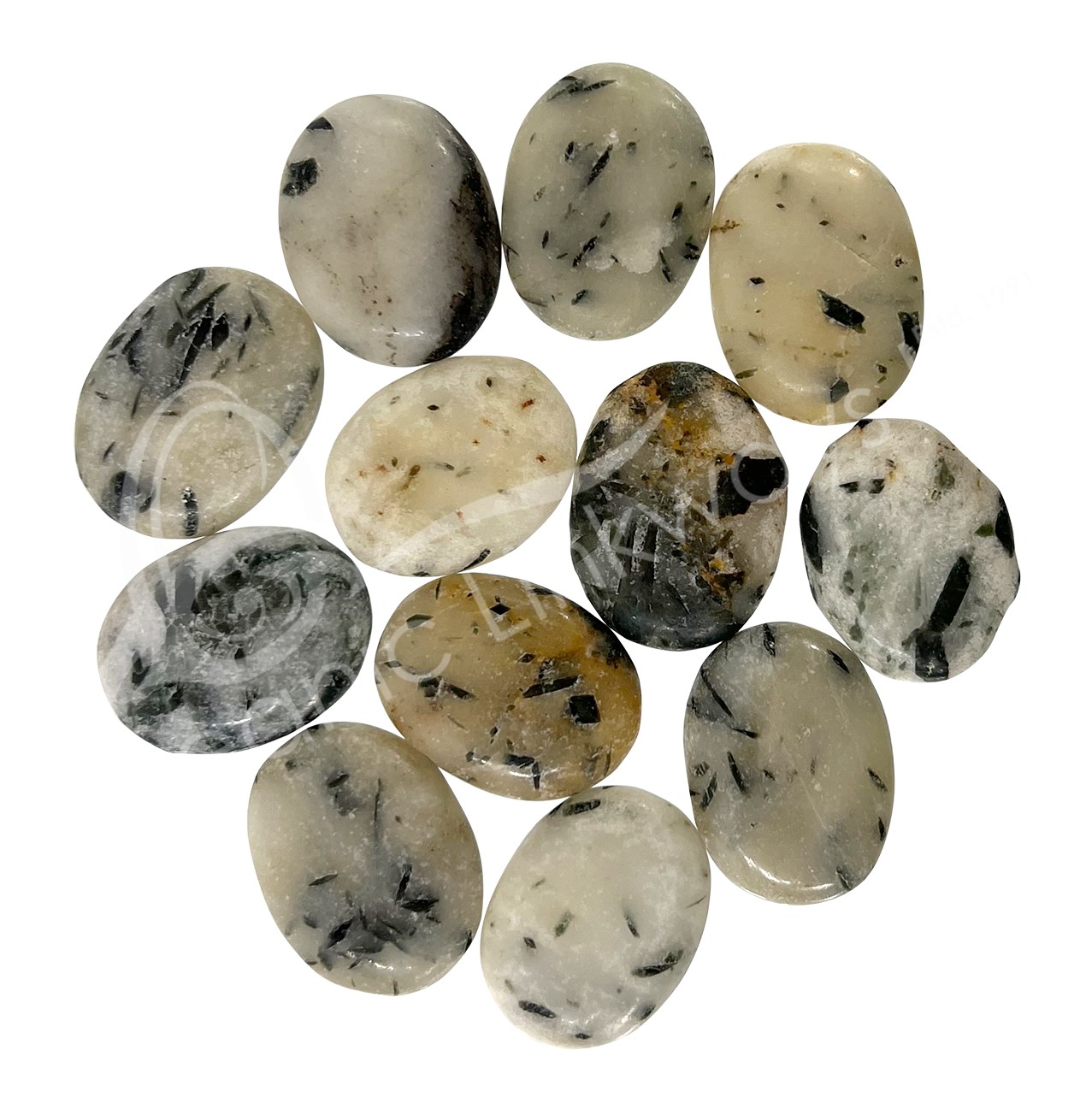 WORRY STONES – QUARTZ WITH GREEN TOURMALINE RUTILE (DZ) 1.5″