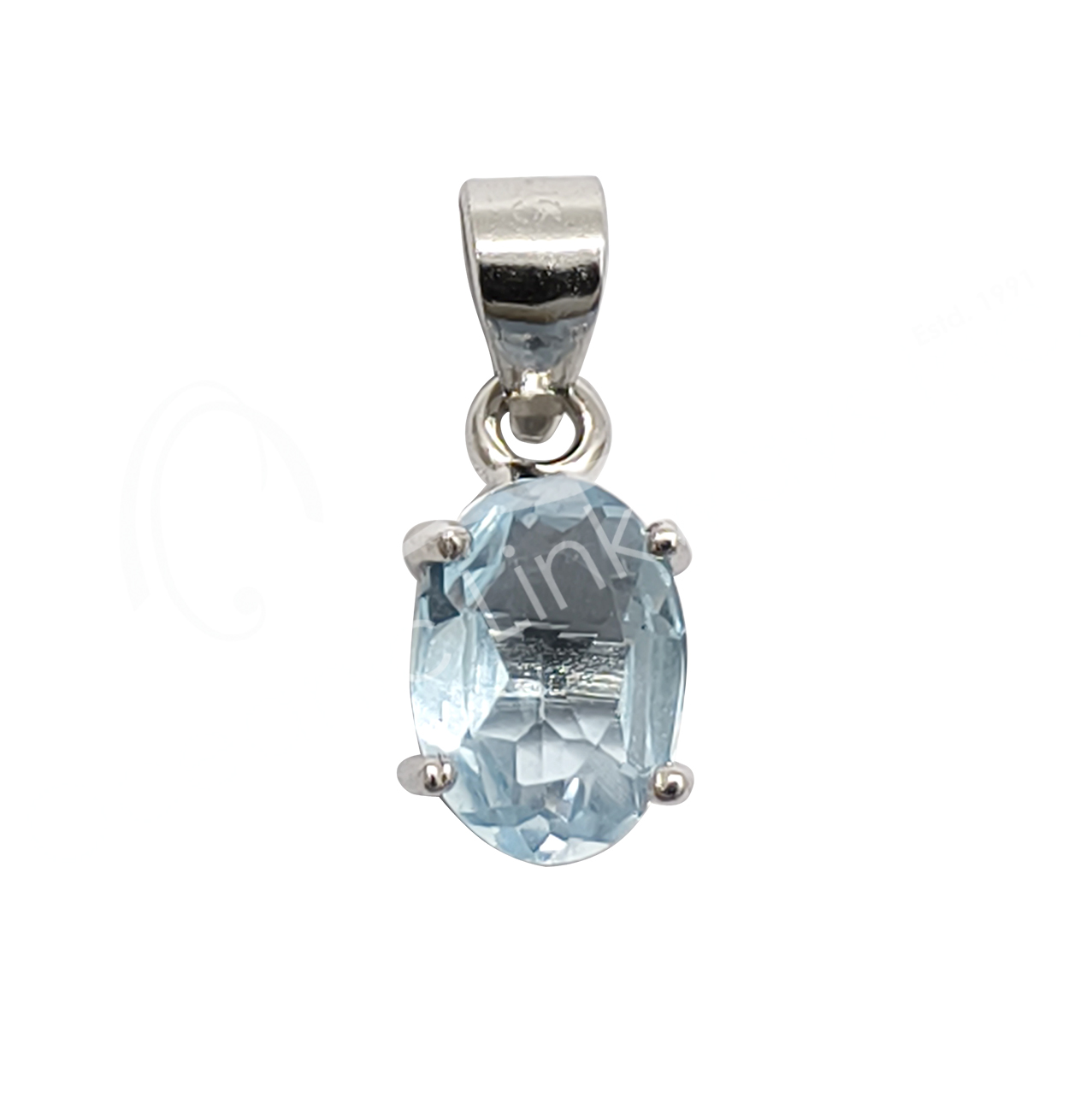 STERLING SILVER – PENDANT TOPAZ, BLUE FACETED OVAL 5-7 MM