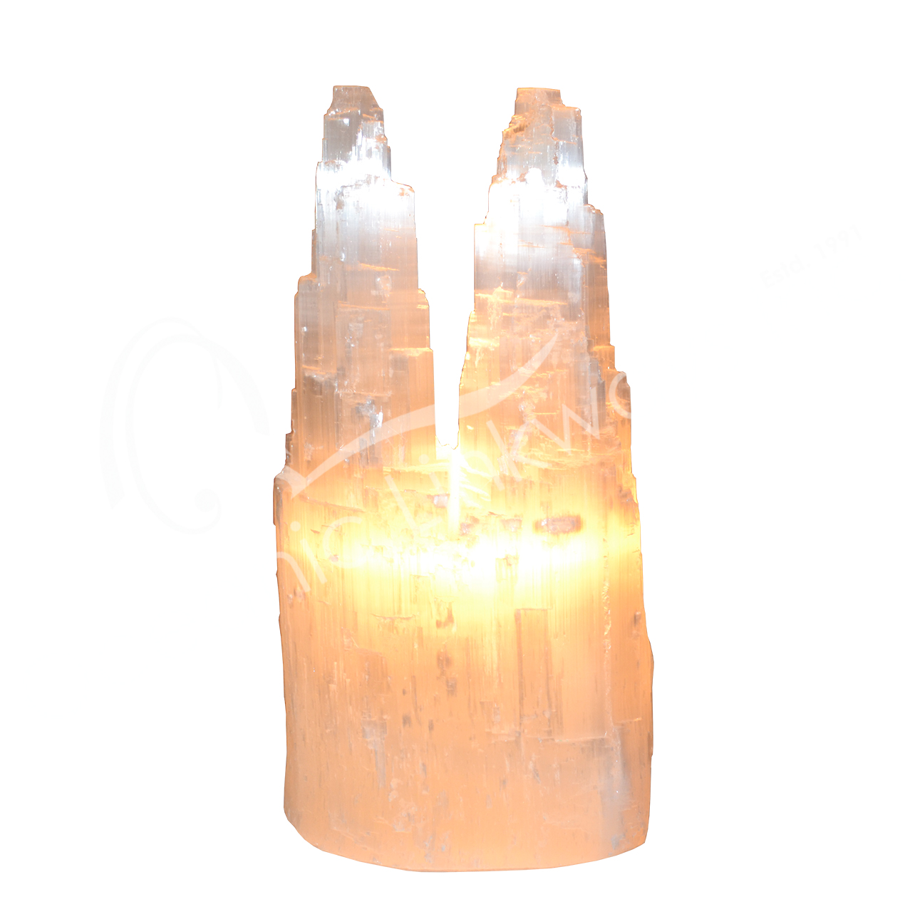 LAMP – SELENITE DOUBLE ICEBERG NO CORD 12-14″H