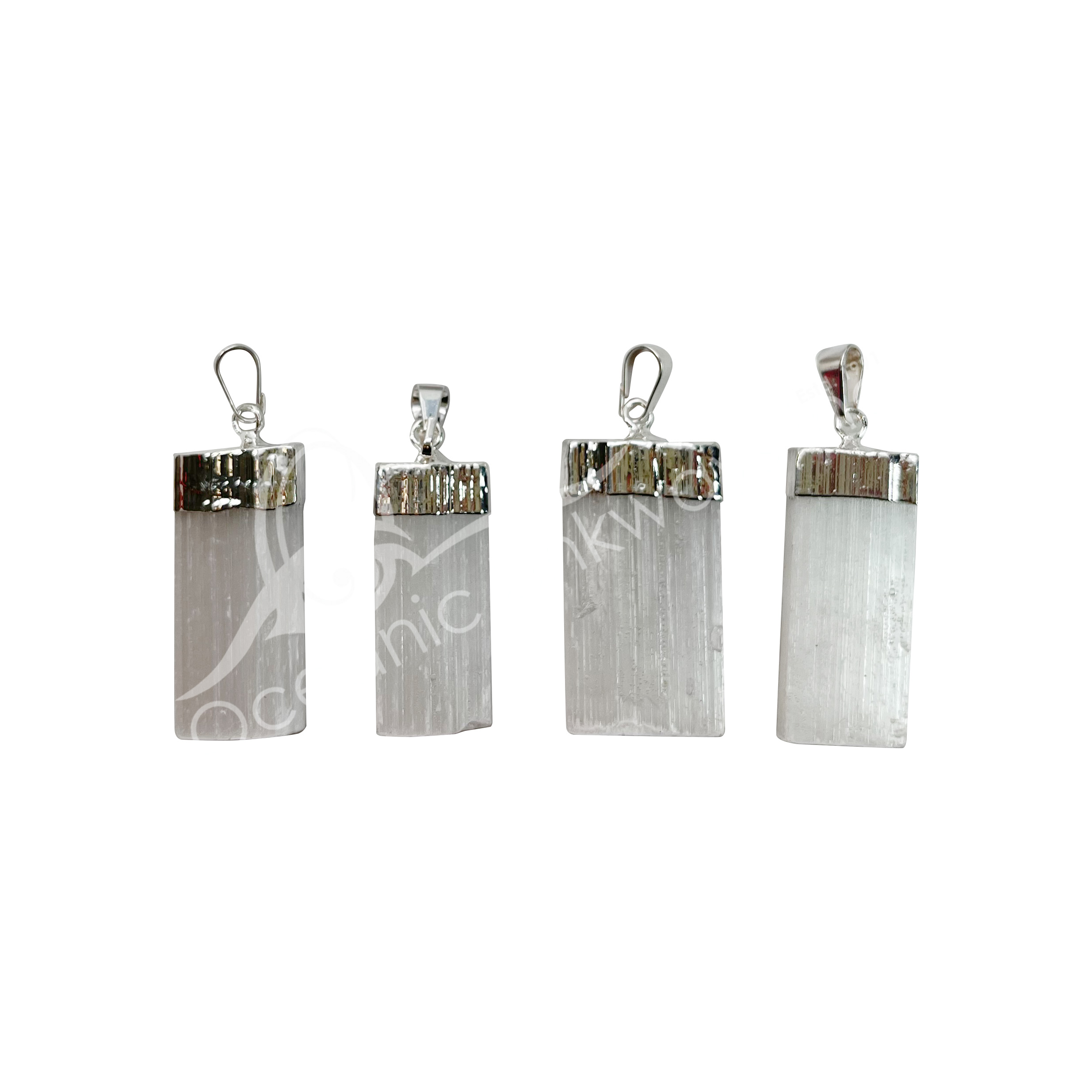 PENDANT – SELENITE ROUGH WITH CAP 1.5-2″