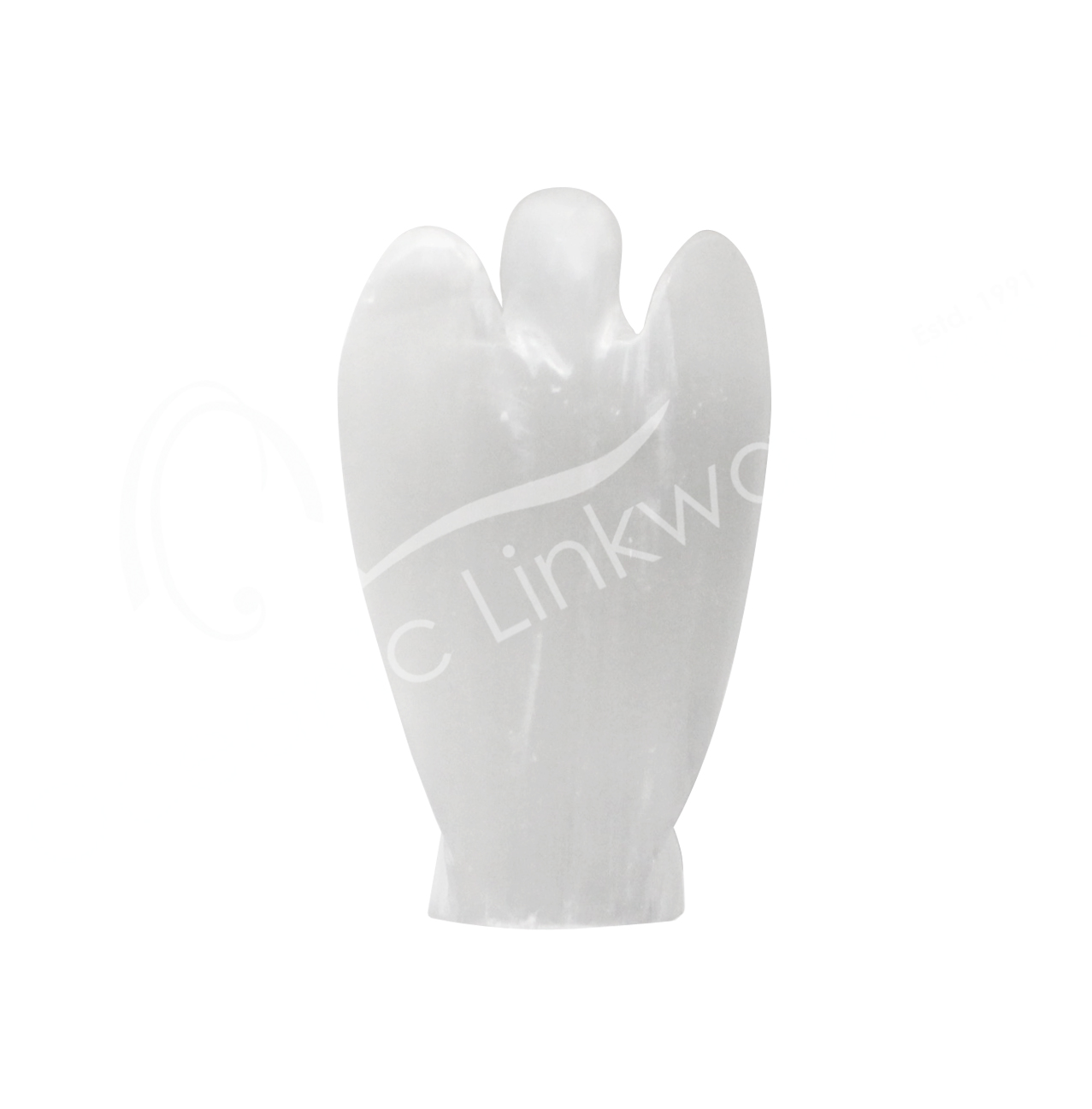 CARVING – ANGEL WINGS SELENITE ON GOLD METAL STAND 6.25″H