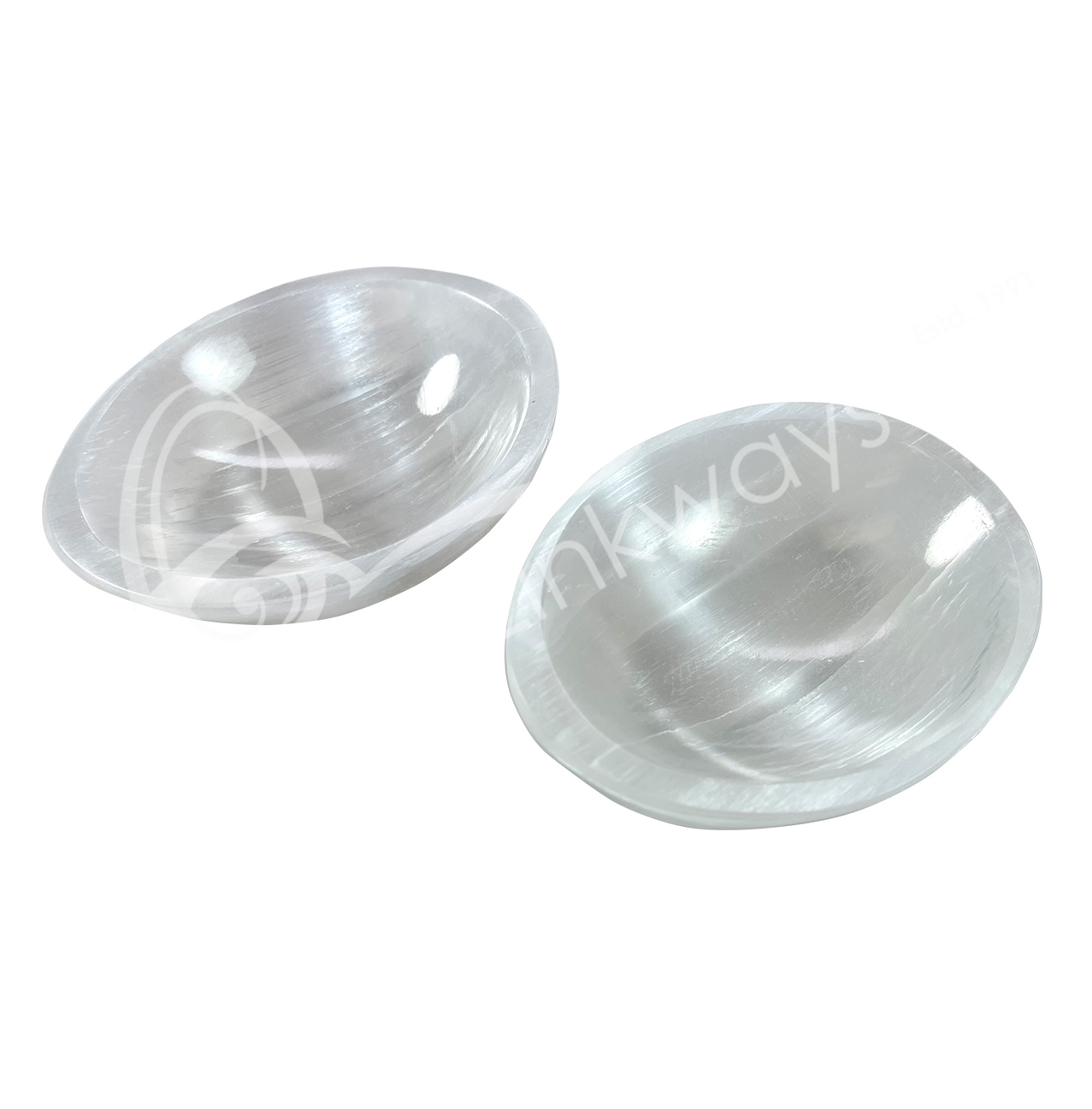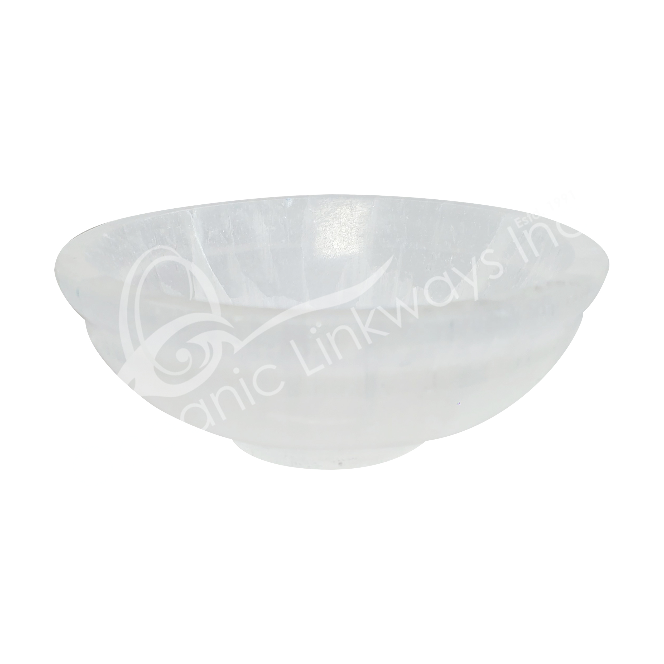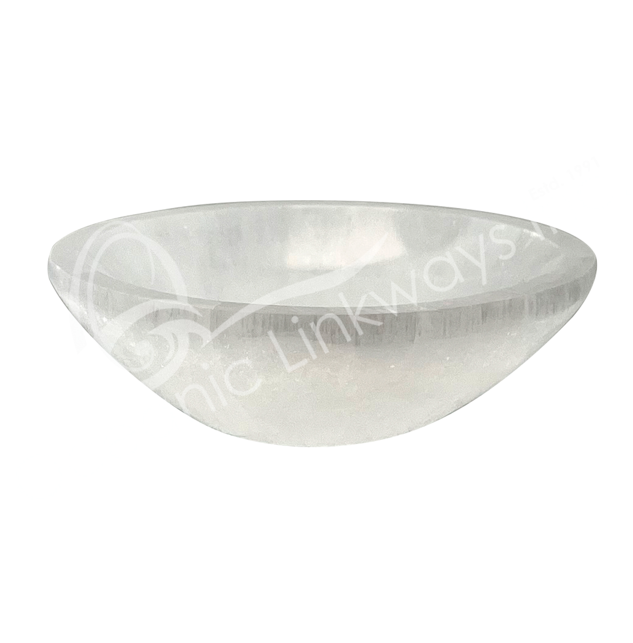 BOWL – SELENITE OVAL ENGRAVED FLOWERS 4″