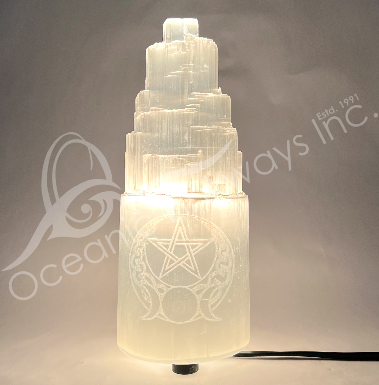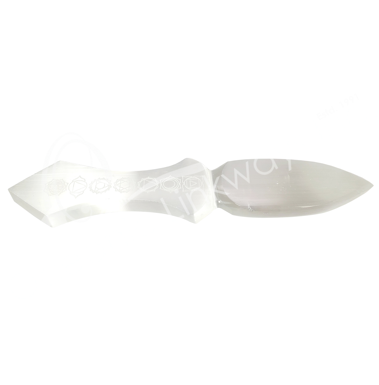 ATHAME – SELENITE PENTACLE ENGRAVED 9.5″
