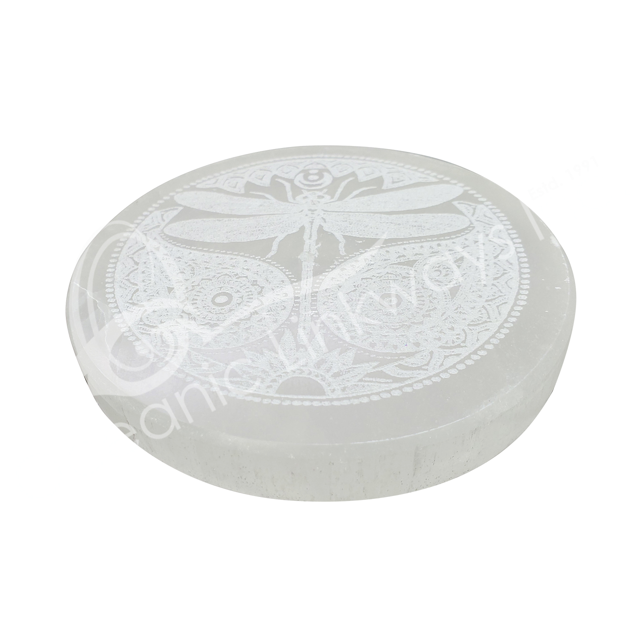 INCENSE HOLDER – SELENITE DRAGONFLY 4″DIA