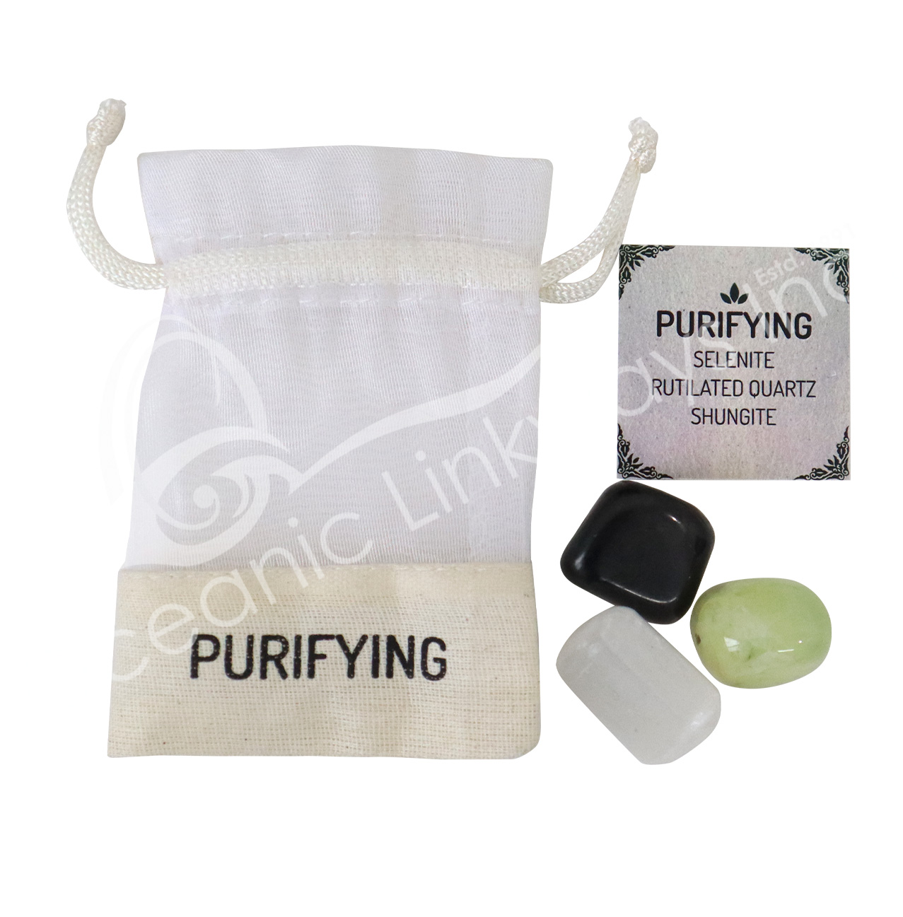 TUMBLED STONES KIT – PURIFYING/SELENITE, RUTILATED QUARTZ, SHUNGITE 15-35 MM
