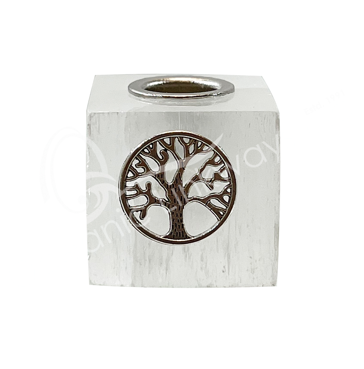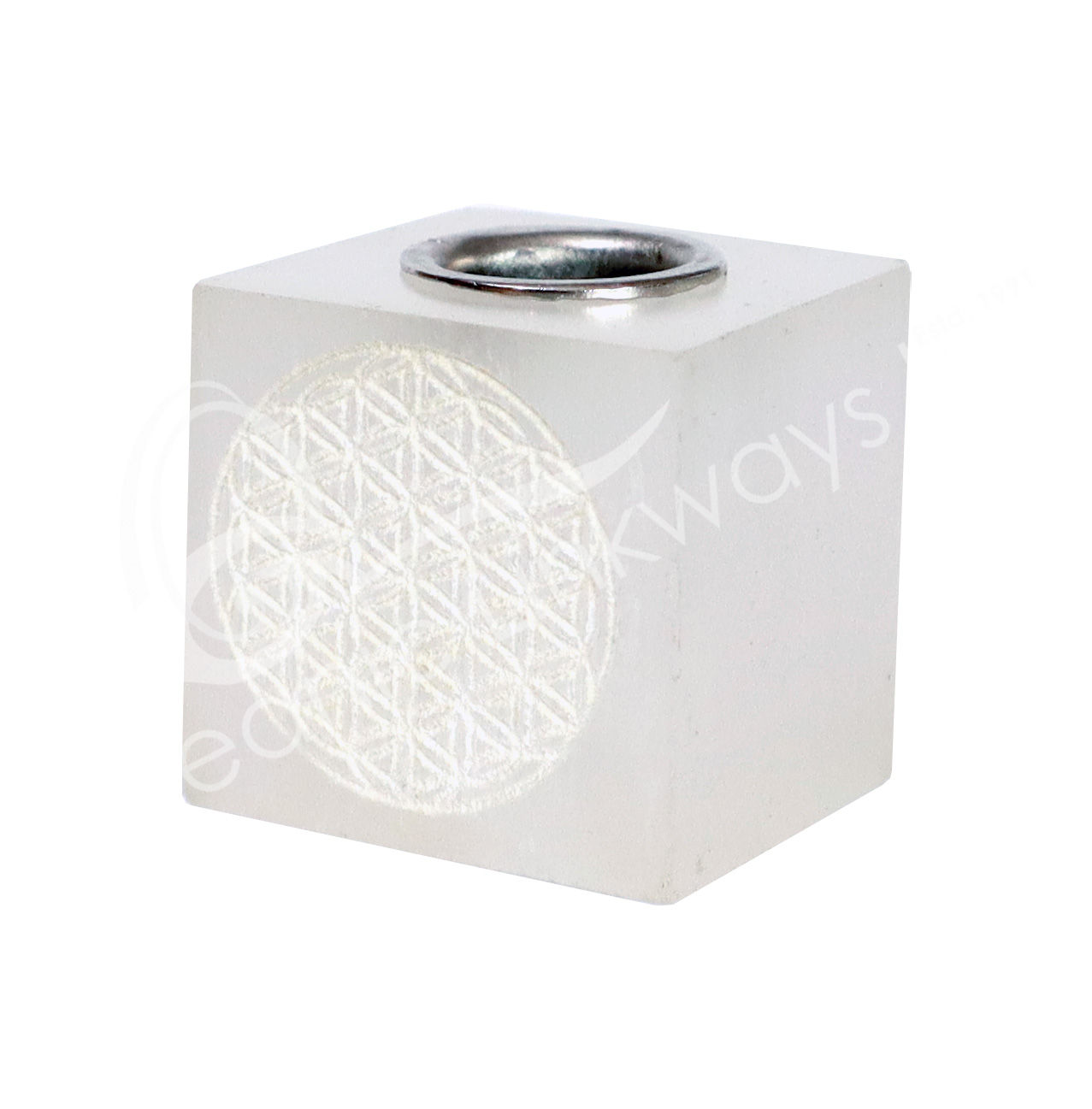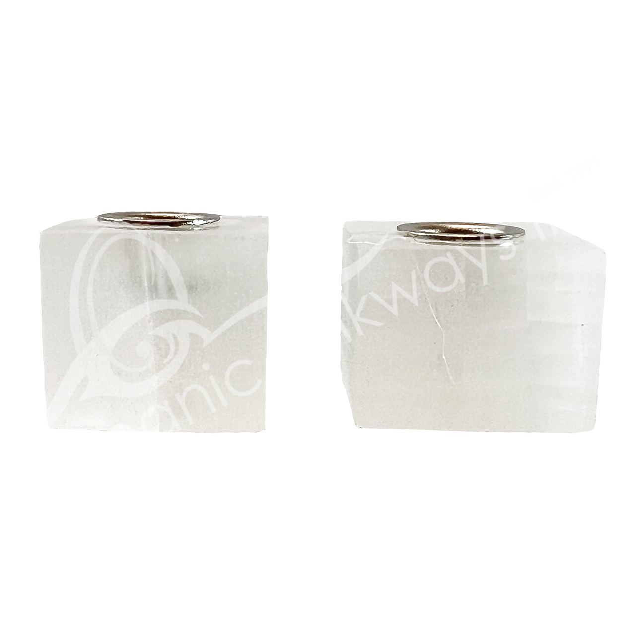 MINI CANDLE HOLDER – SELENITE PLAIN CUBE (PK 3) 1.25″