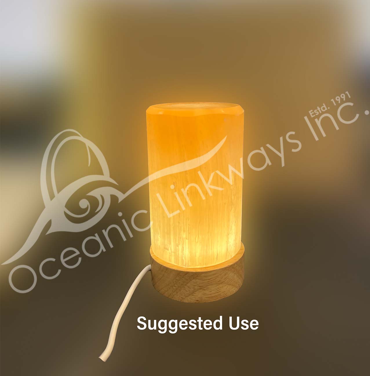 (CLOSE OUT) CYLINDER – SELENITE, ORANGE WITH HOLE UNDER 2″DIA. X 4″H