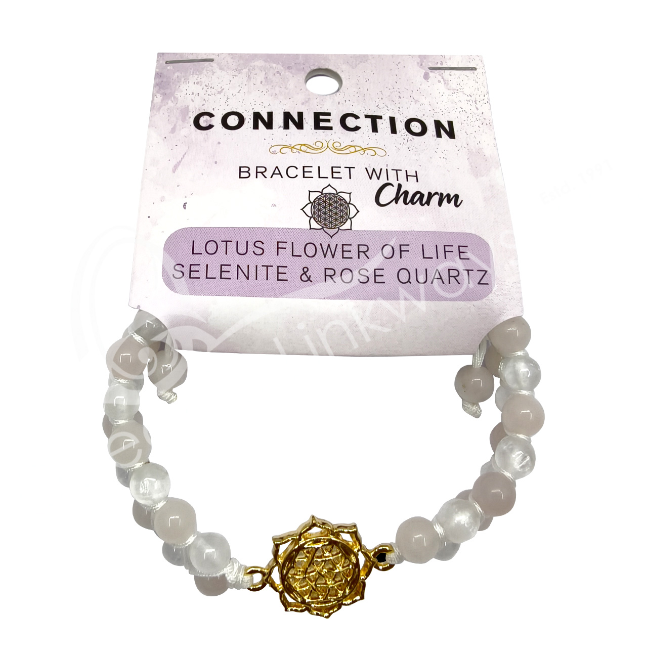 BRACELET – ROSE QUARTZ & SELENITE WITH CYLINDER ROSE QUARTZ (8-8.5 MM) 7.15-7.25″