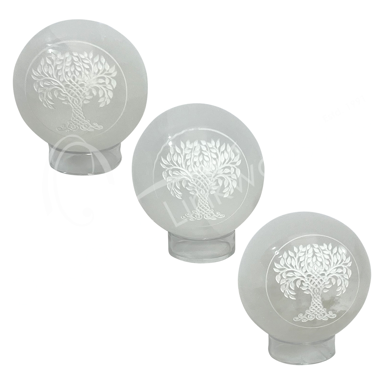 SPHERE – SELENITE ENGRAVED FLOWER OF LIFE 1.5-2″