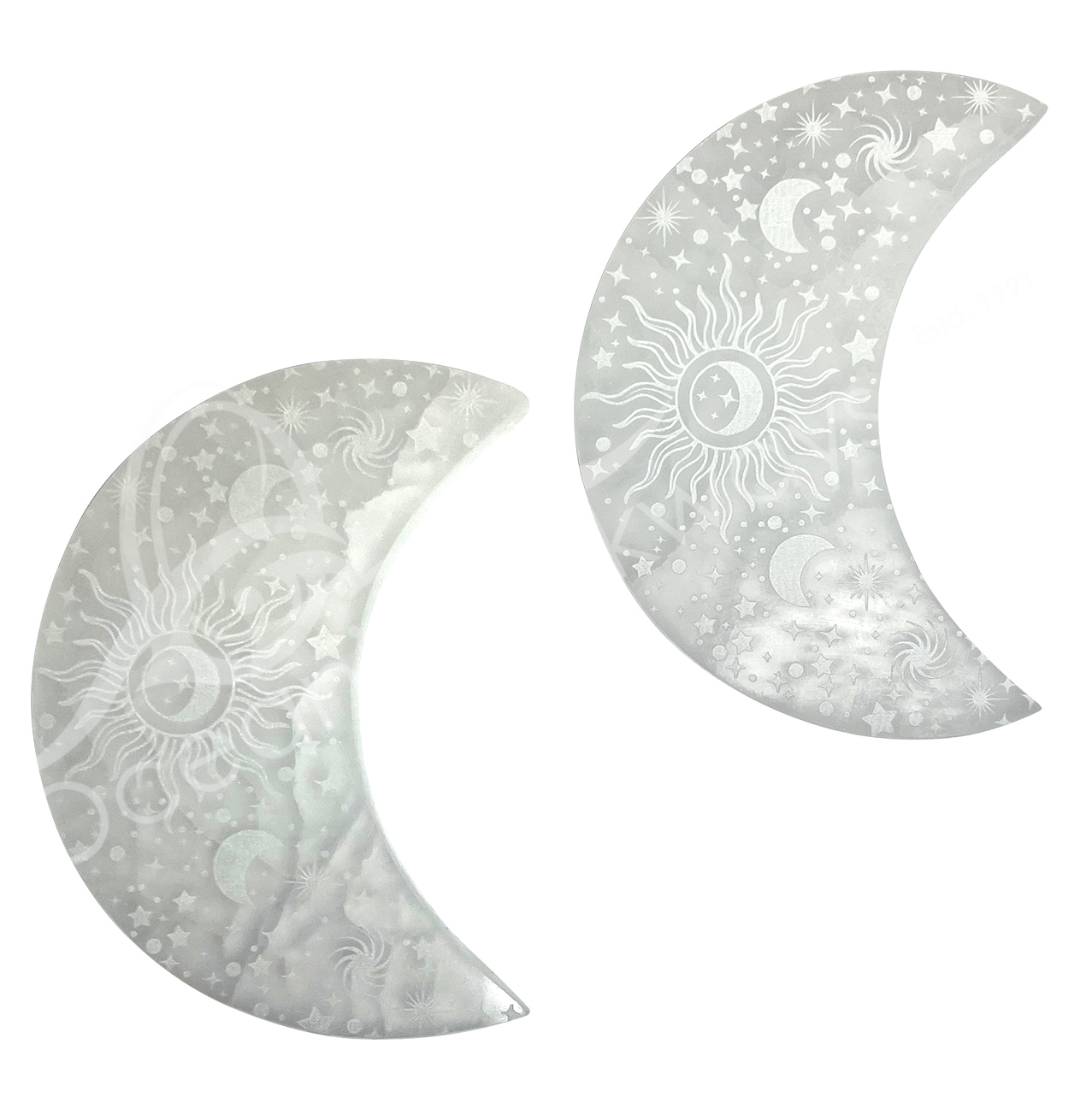 MOON – SELENITE ENGRAVED CELESTIAL 5″L X 1.75″W