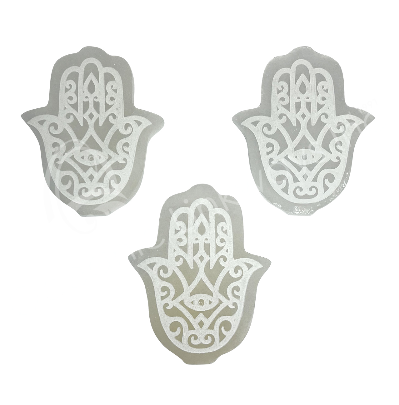 PALM STONE – SELENITE HAND OF FATIMA 2.5″