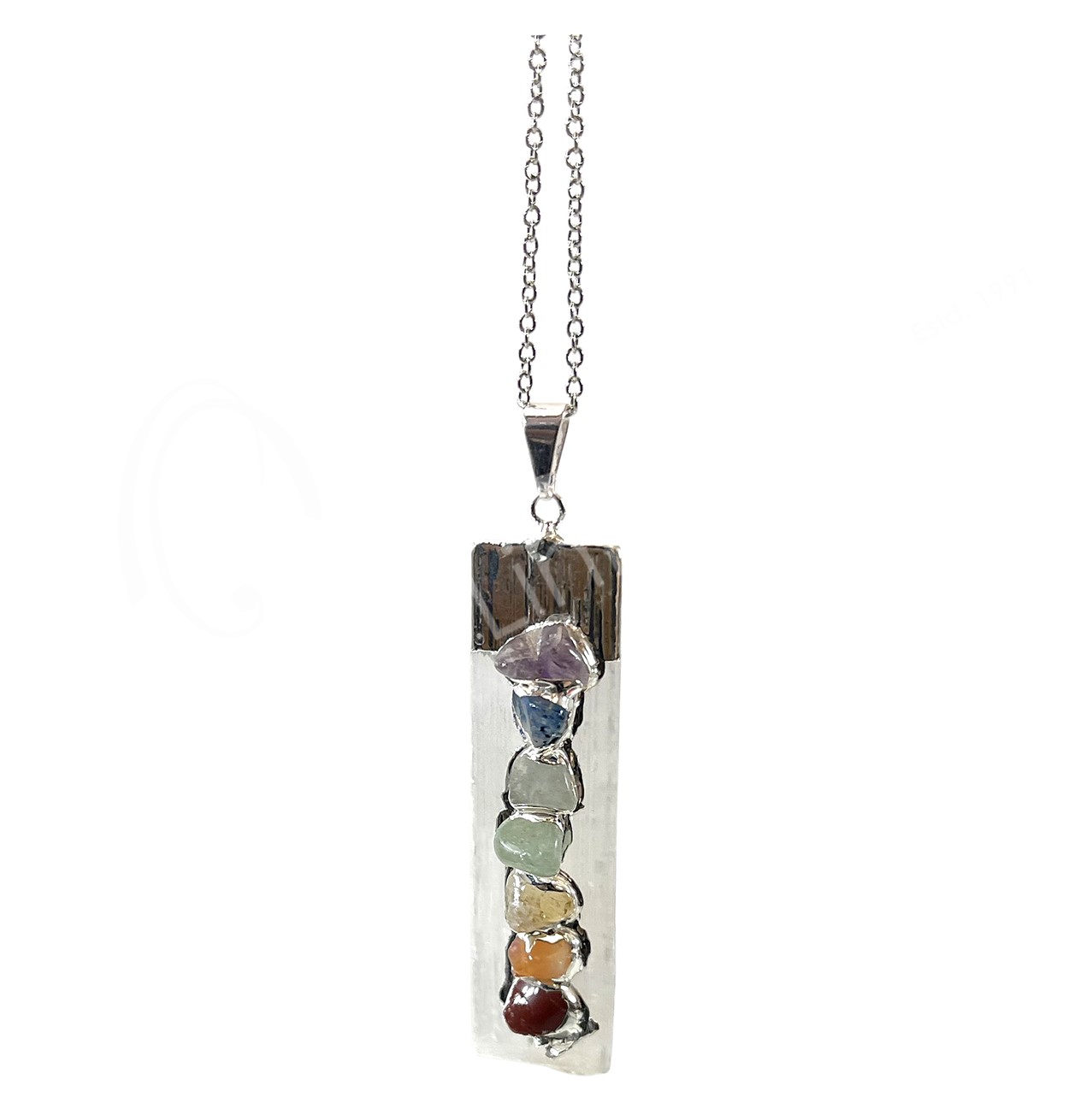 PENDANT – SELENITE WITH CHAKRA STONES 2.25-2.5″