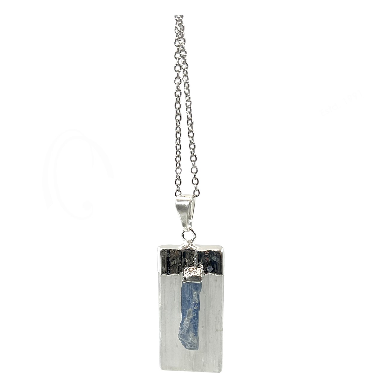 PENDANT – SELENITE WITH KYANITE 1.5-1.75″