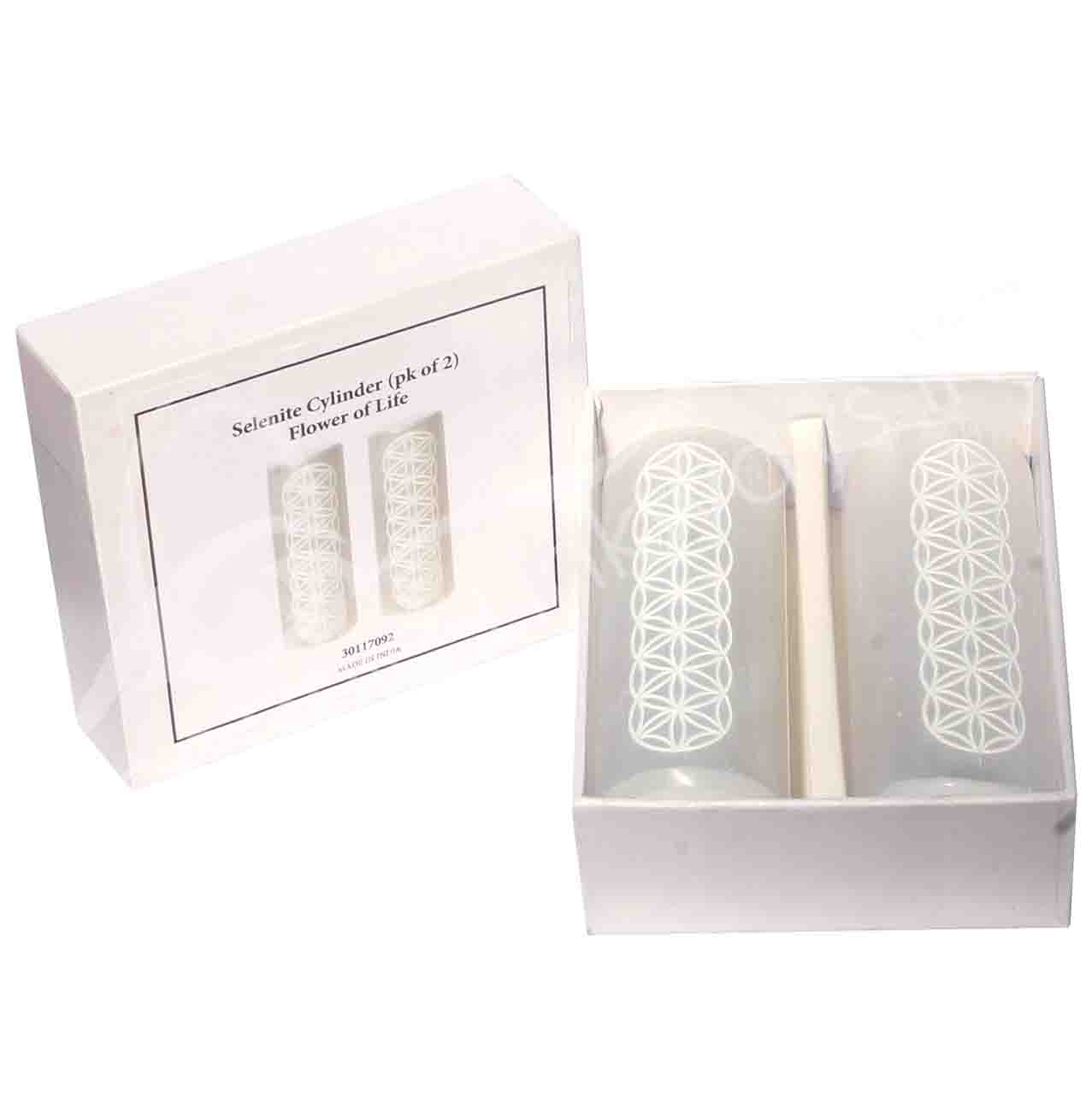 ROUGH – SELENITE STICKS ENGRAVED FLOWER OF LIFE (PK 5) 4″L X 1″W