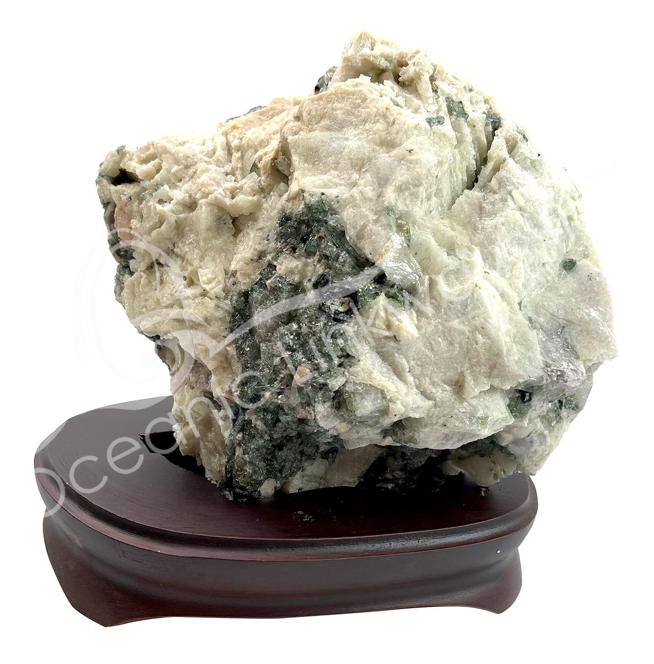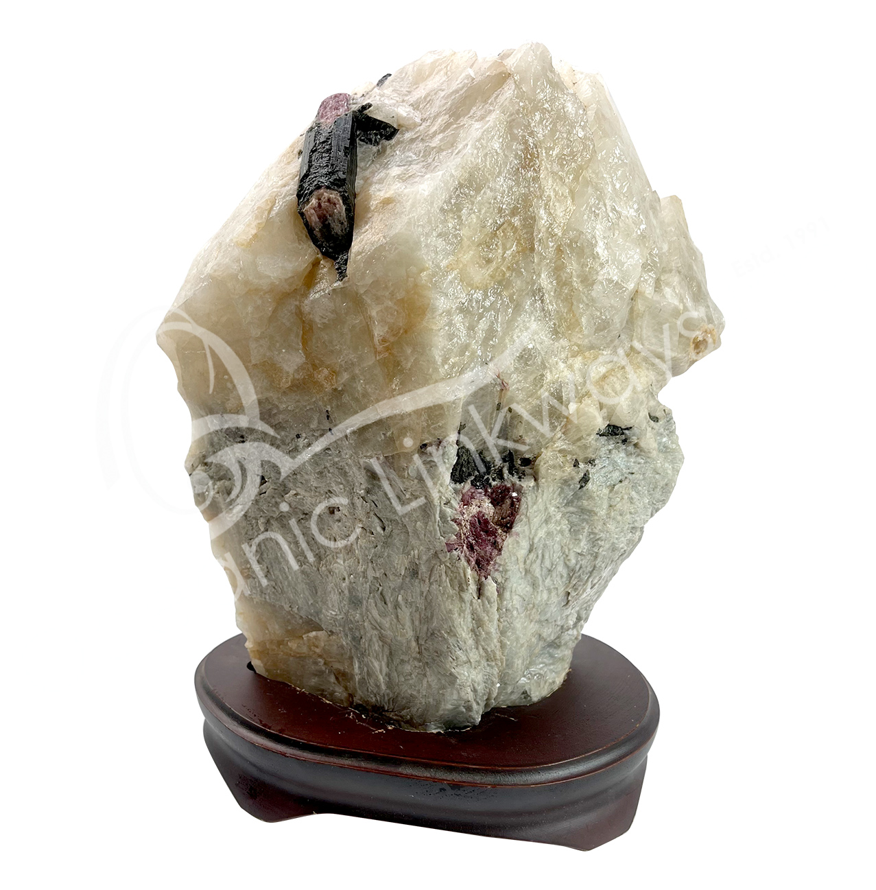 SPECIMEN – TOURMALINE, GREEN & PINK B IN MATRIX ON WOOD BASE 7-10″