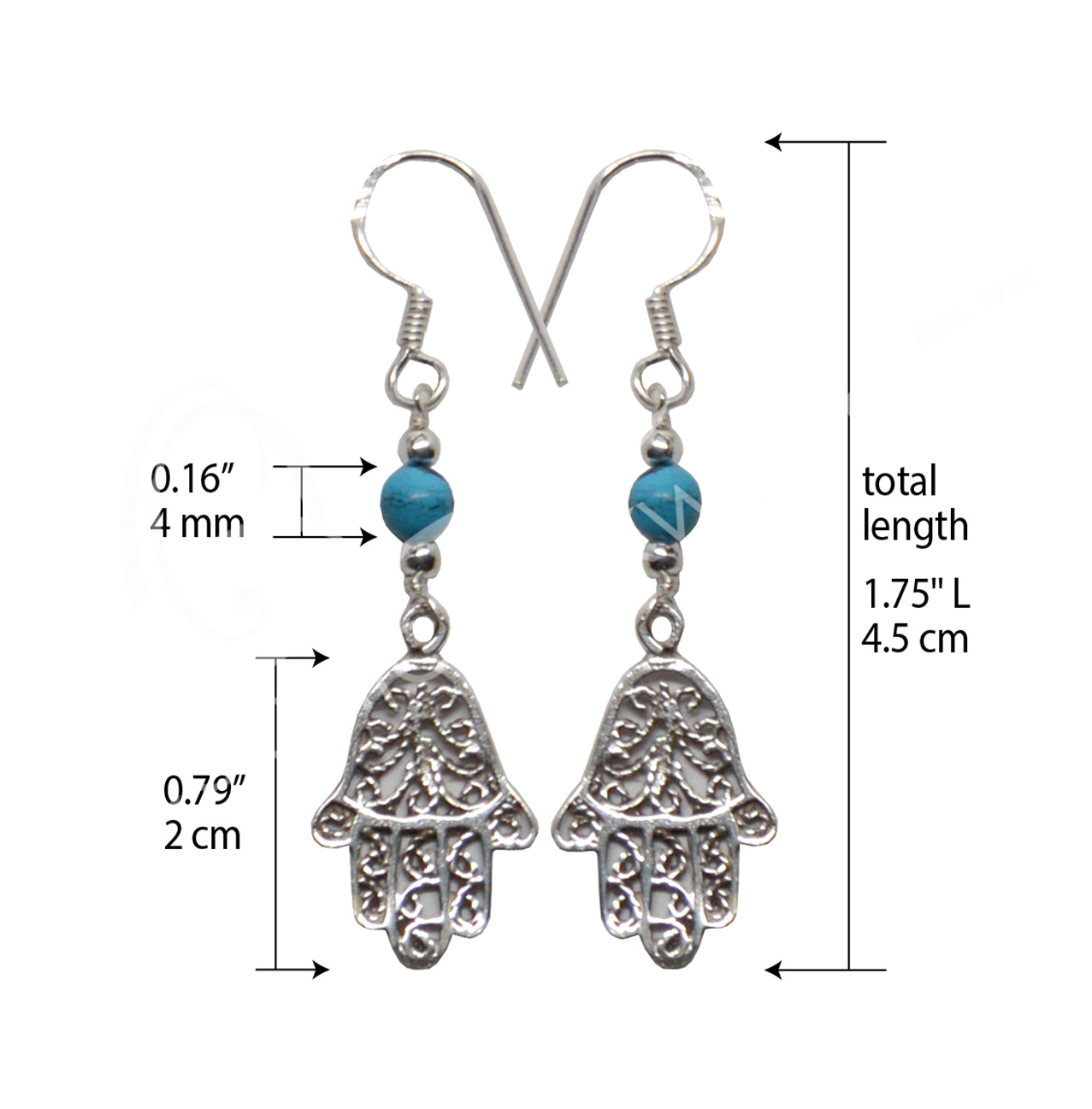 STERLING SILVER – EARRINGS HAND OF FATIMA TURQUOISE 1.75″