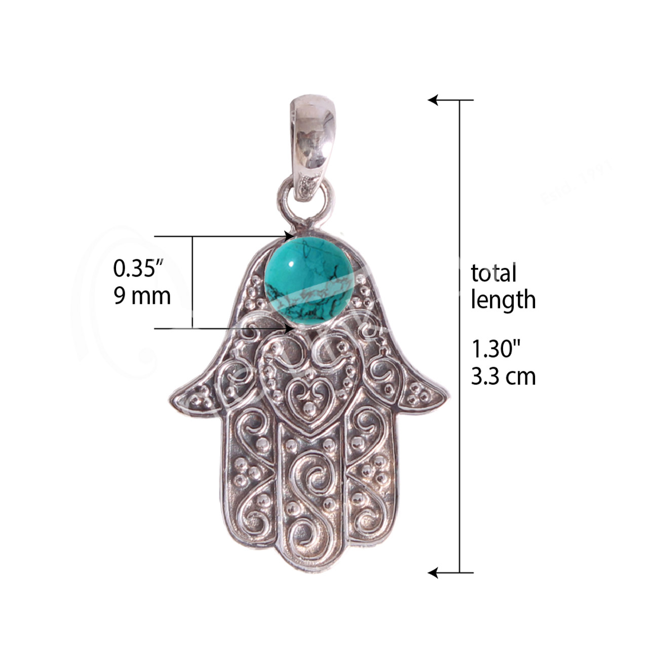 STERLING SILVER – PENDANT HAND OF FATIMA TURQUOISE 1″W X 1.5″L